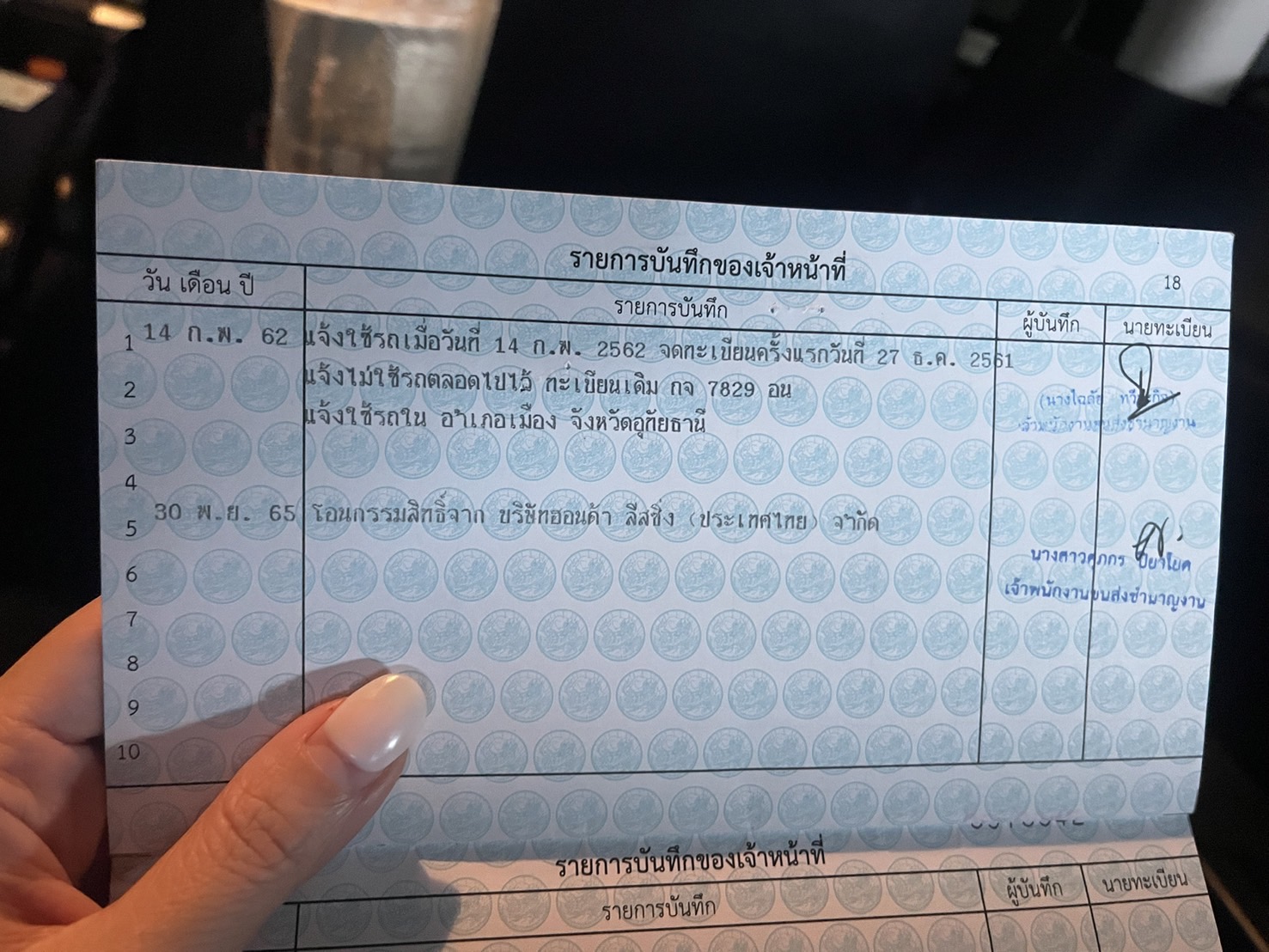 สวัสดีคะ เราซื้อรถมือ1ป้ายแดง ผ่อนหมดปี65เมื่อวานเอารถไปไฟแนนซ์กับแบงค์ ปรากฏว่าไม่ผ่านจากการลงทะเบียนหน้า18 ว่ารถถูกระง