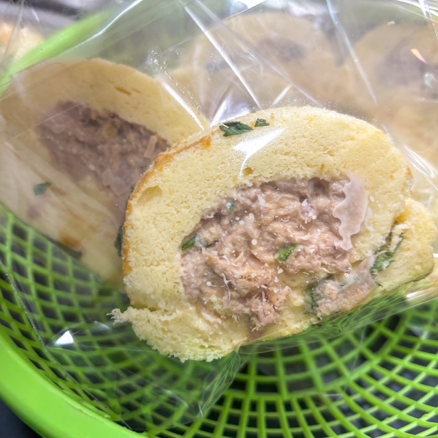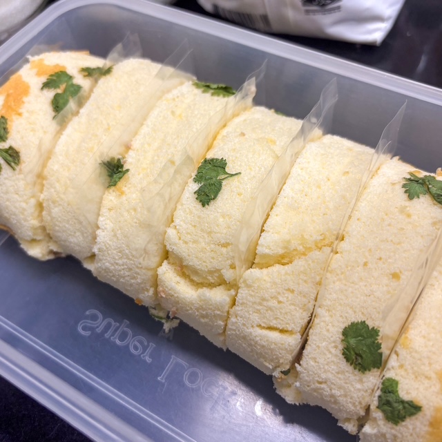 ทำโรลเตรียมไว้ และพักให้เย็น แล้วตักไส้ใส่ แล้วโรล