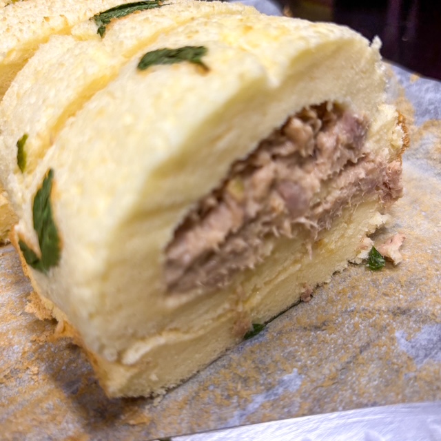 "โรล ทูน่า" ผมทำเมนูนี้ขึ้นมาเพราะผมแค่ติดถึงร้านโปรด ร้านที่ผมเคยกินอยู่ประจำ ที่ตอนนี้ไม่ได้เปิดแล้ว เป็นร้านที่อยู่แถวๆ ซอยอัสสัมชัญ ศรีราชา ร้าน Seven Saint ร้านนี้เป็นร้านโปรดร้านประจำของผมเลย และโรลทูน่าของที่ร้านนี้ คือเป็นที่สุดสำหรับผมจริงๆ วันนี้ผมก็เลยลองทำดู แต่ก็รู้ว่าคงไม่ได้เหมือนอะไร แต่ผมยังพอจำรสชาติได้อยู่ ก็พอคร่าวๆ ว่า น่าจะใส่อะไรบ้าง แต่วันนี้ส่วนของตัวแป้งโรล ผมไม่ได้เป็นแบบแป้งที่ใส่ยีสต์อะไรแบบนั้น ผมใช้โรลที่ผมใช้อยู่ประจำๆ ก็ถือว่าเป็นของ คาวกึ่งหวานไป