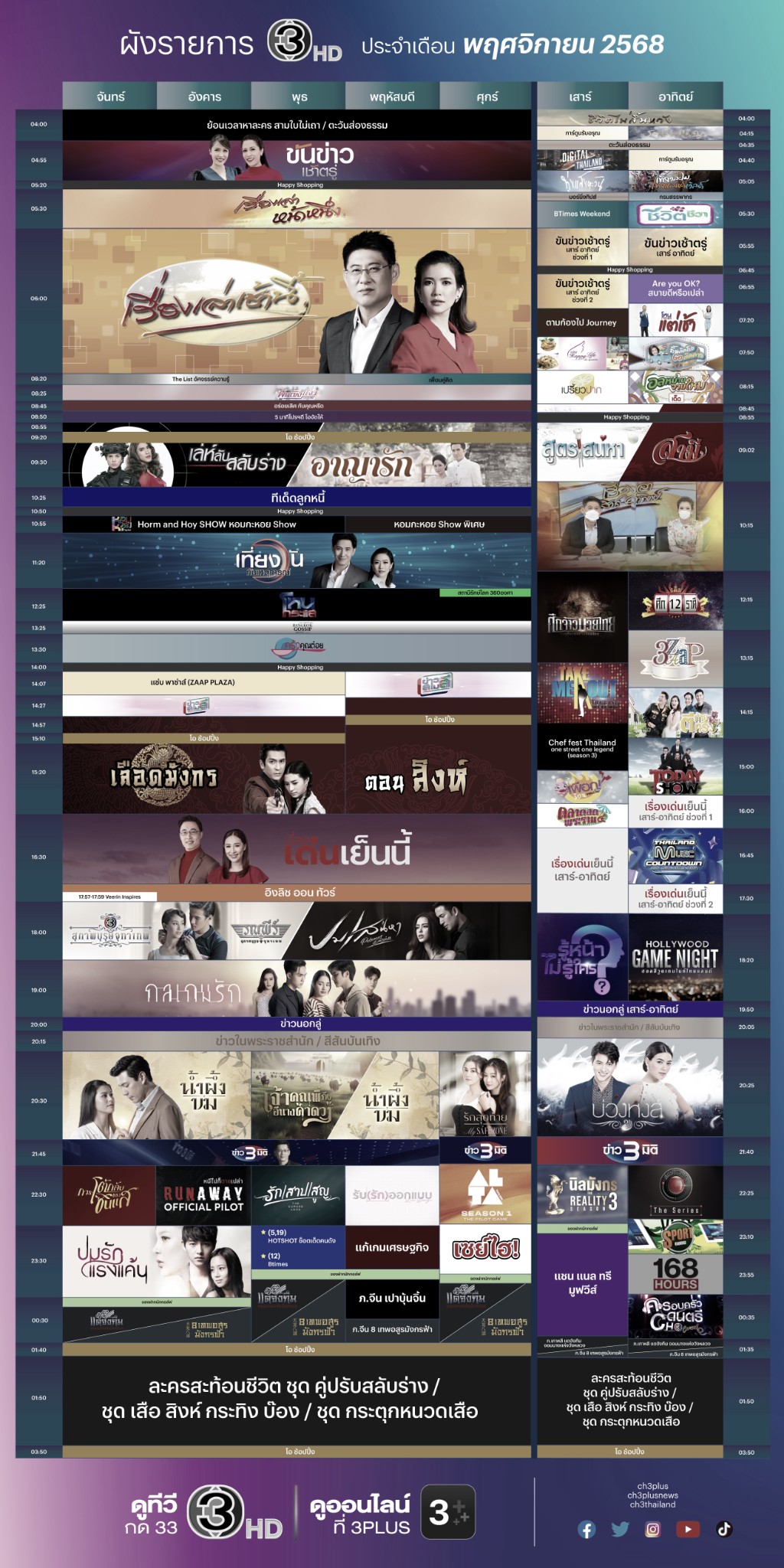 เดือนพฤศจิกายนนี้ ละครและรายการข่าว เพิ่มวันออกอากาศ