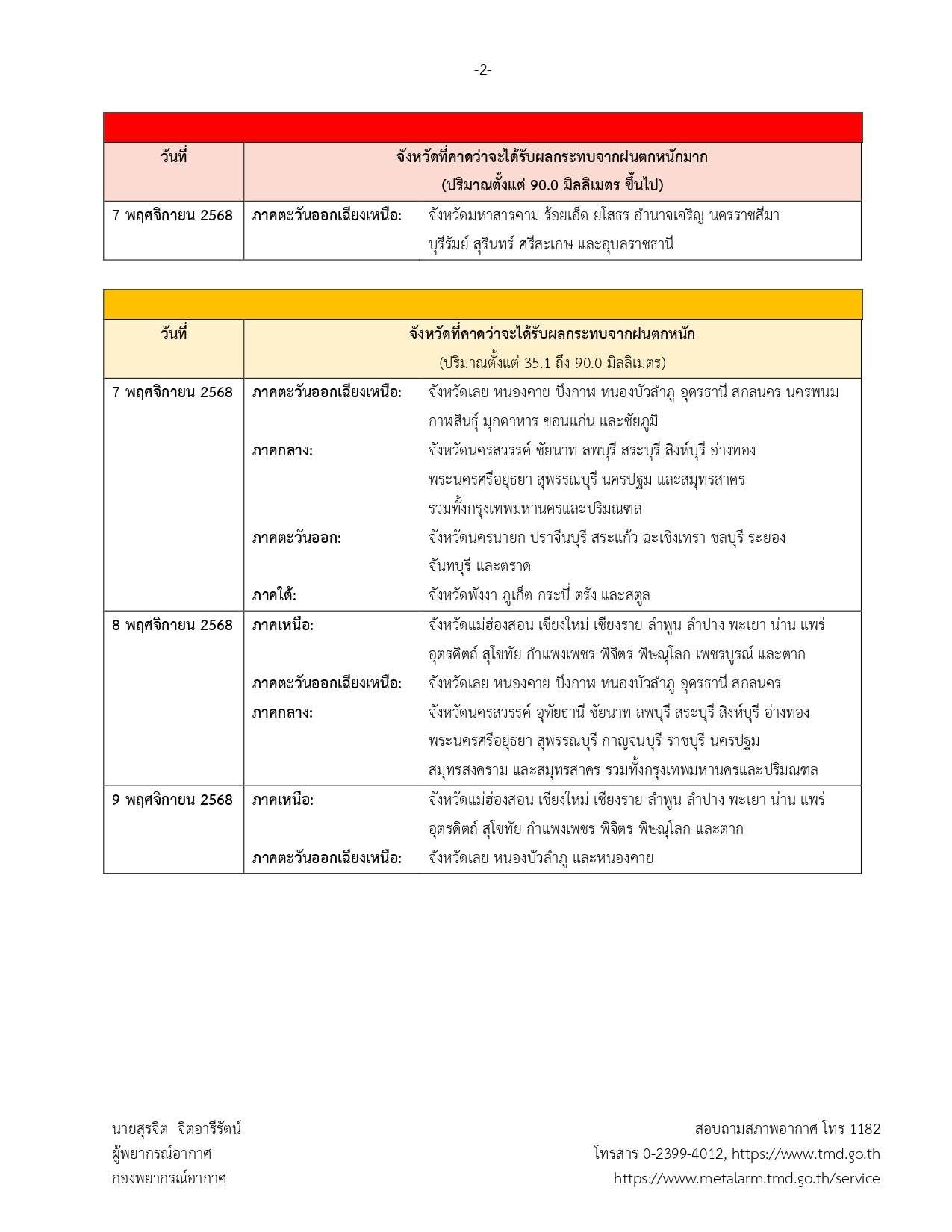 กรมอุตุนิยมวิทยาจะออกประกาศฉบับต่อไปในวันที่ 5 พฤศจิกายน พ.ศ. 2568 เวลา 17.00 น.