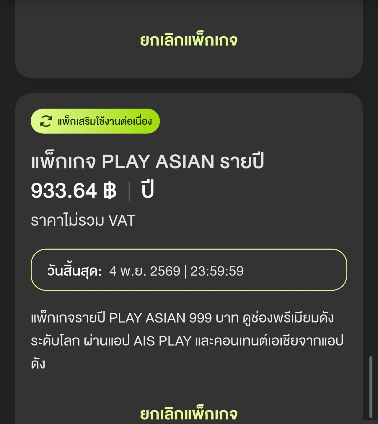 สมัคร แพคเกจรปีจ่ายรายปีไป ตั้งแต่เมื่อวานตอนนี้ ยังใช้ไม่ได้สักแอพ play asian พอกดลิงค์ ไปแอพดูหนัง ก็บอก ไม่มีสิท ไม่มีสิท บางแอพก็ ไม่ได้ จำนวนวัน ได้แค่เดือนเดียว สมัครไปปี ต◌ิดต่อ ais ais บอกต้องไปติดต่อ แอพ viu wetv iqyi เอง คือ แล้วมีแต่ ai ติดต่อใครแบบนี้ เห้ออออ ใครเป็นบ้างบอกทางแก้ทีค่ะ