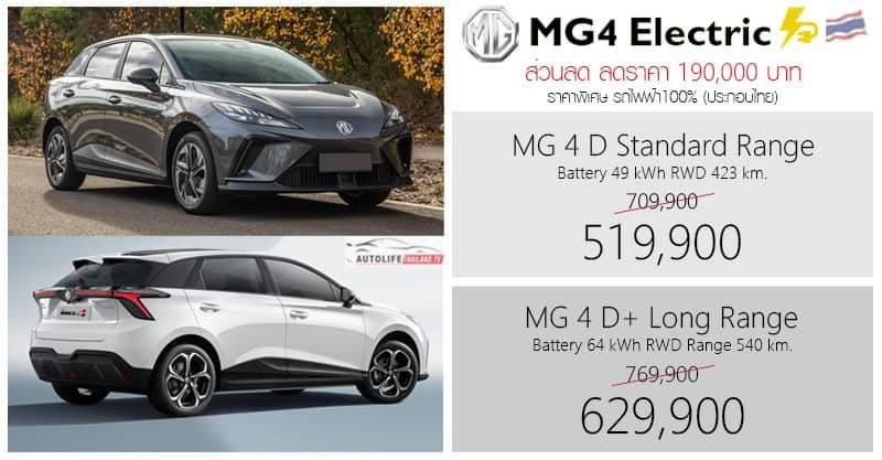 ส่วนลด 190,000 ! ราคาพิเศษ MG4 : 519,900 – 629,900 บาท , ส่วนลด 130,000 ! MG S5 EV Plus รถไฟฟ้า : 619,000 – 849,900 บาท