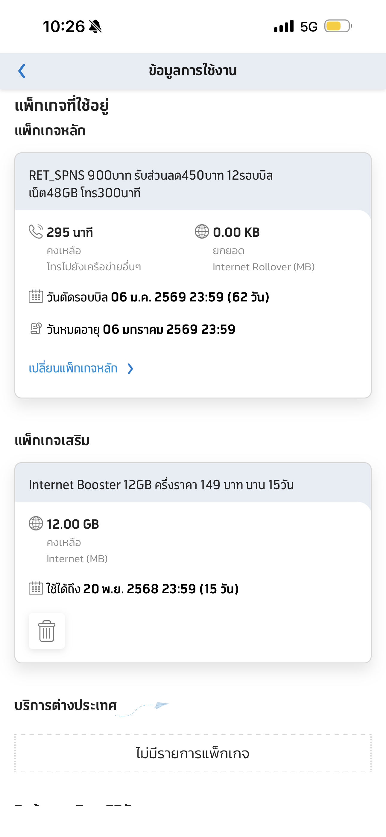 ยกเลิกแพ็คเกจเสริมของดีแทค ในแอพไม่ได้