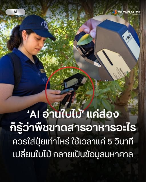 Leaf Monitor เป็นเครื่องมือที่ใช้ AI และเซ็นเซอร์วัดแสง (Spectrometer) ในการสแกนใบพืช เพื่อดูว่าพืชมีสารอาหารเพียงพอหรือไม่ โดยไม่ต้องรอผลแล็บเป็นสัปดาห์เหมือนแต่ก่อน เพราะมันสามารถให้ผลลัพธ์ได้ภายในเวลาแค่ 5 วินาที และ AI จะช่วยวิเคราะห์ให้เลยว่า