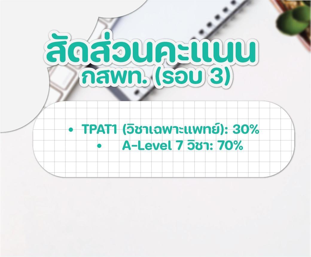 เคล็ดลับ: การทำคะแนน TPAT1 (30%) ให้สูงจะช่วยดึงคะแนนรวม และเป็นตัวช่วยคัดกรองสำคัญในการผ่านเกณฑ์ขั้นต่ำเข้าสู่รอบสัมภาษณ์ ส่วน A-Level 7 วิชา (70%) คือฐานคะแนนที่คุณต้องทำได้ดีในทุกวิชาเพื่อความได้เปรียบในการจัดอันดับ!