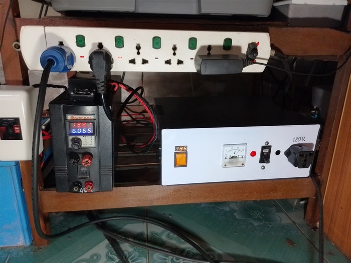 ผมจะใช้พลังงานไฟฟ้าจากโซล่าเซลล์กับคอมพิวเตอร์และพัดลม ได้ประกอบอินเวอร์เตอร์ 12/24V To 230V เสร็จเรียบร้อยทดสอบใช้งานหลายเดือนแล้วแต่ยังไม่ได้ซื้อแผงโซล่าเซลล์ตอนนี้ใช้ไฟฟ้าจากการไฟฟ้าผ่านเครื่องจ่ายไฟเอนกประสงค์ที่ผมประกอบไว้ไปก่อน เมื่อใช้ไฟฟ้าจากการไฟฟ้าจึงเสมือน UPS pure sine wave แตกต่างกันที่เครื่องนี้ไม่มีเสียงเตือนเมื่อไฟฟ้าของการไฟฟ้าดับและเสียงเตือนเมื่อแบตเตอรี่จะหมดไฟ เท่าที่ใช้มาหลายเดือนไม่เจอปัญหาใหญ่อะไรใช้งานดีมากเปิดทั้งวันพัดลมระบายความร้อนแทบจะไม่ทำงานเลยเพราะผมใช้แผ่นฮีตซิงค์ขนาดใหญ่ระบายความร้อนได้ดี