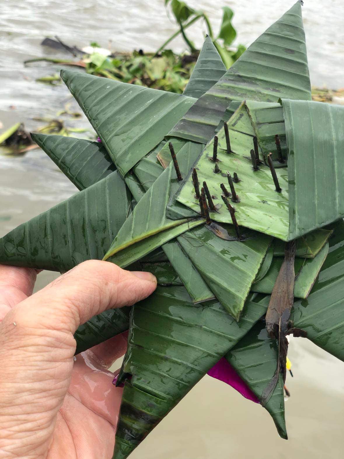 หยุดซื้อหยุดทำหยุดสนับสนุนหยุดลอยกระทงที่คนทำกระทงมาขายมักง่ายใช้ตะปู,เข็มหมุดยึดติด