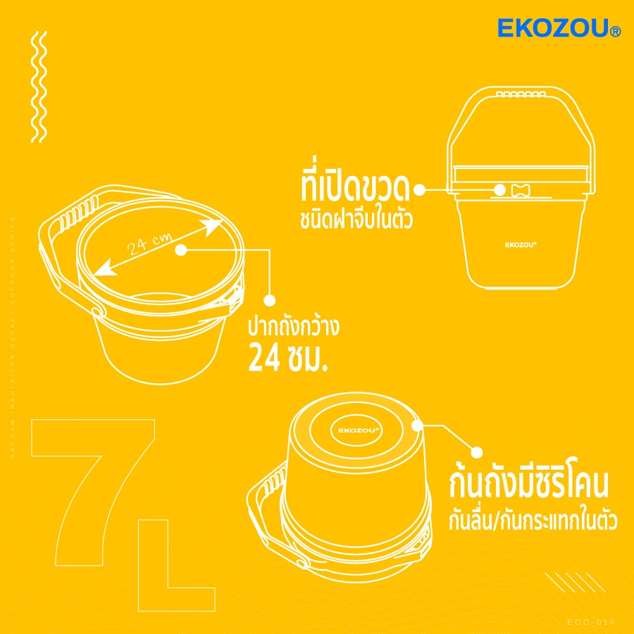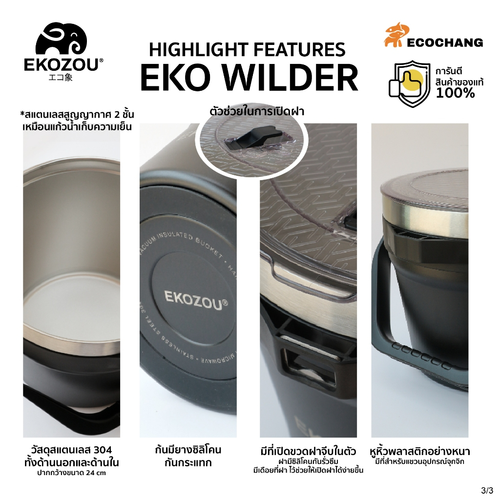🧳🎒 EKOZOU EKO WILDER สแตนเลส 304 เก็บความเย็นยาวนาน ถังน้ำแข็งสแตนเลส 7 L เหมาะแคมป์/ปาร์ตี้ 🍹🌅