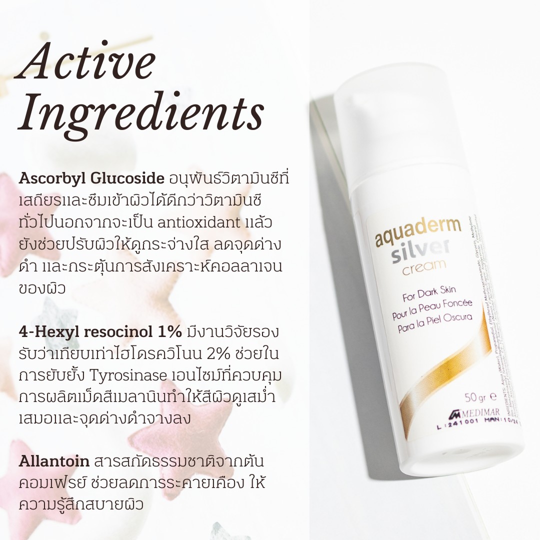 silver cream มอยส์เจอร์ไซอร์ที่มาช่วยเคลียร์ปัญหาเรื่องจุดด่างดำและรอยสิวที่ขยันขึ้นมากเว่อร์ ตัวนี้สามารถหยิบใช้ได้ทั้งเช้าและก่อน แต่ความเด็ดก็ต้องยกให้สารแอคทีฟต่างๆ ไม่ว่าจะเป็น
