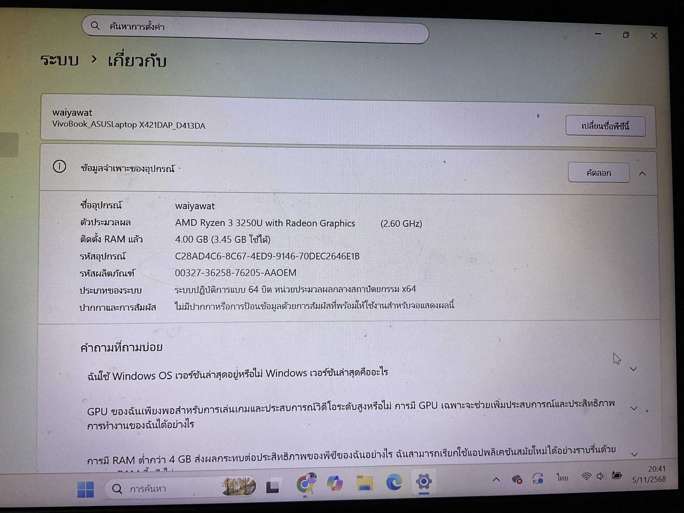 พอดีดน๊ตบุคทำงานผิดปกตำ จากปกติที่ไม่เคยค้างอยู่ๆก็ค้างครับ พอไปตรวจสอบการทำงานแล้วมันขึ้นดังภาพที่แนบครับ เป็นของasus vivobook s14/s15
