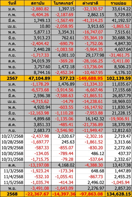Sinthorn Summary 7/11/2568 : ต่างชาติขายสุทธิ -2,717.02 ลบ.