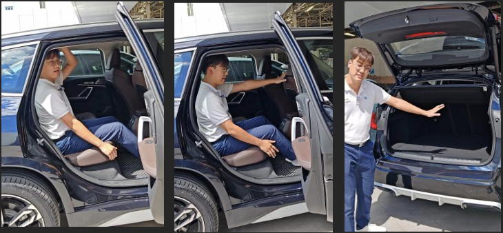 คุณจีเนียสเปิดประตูให้อย่างหล่อๆ แอบเขิลนิดนุง พอขึ้นไปนั่งปุ๊บ รู้เลยว่ามันคนละเรื่องกับ EV หลายรุ่นที่เคยขับ และด้วยความเราเป็นสาวไซซ์มินิ มองจากภายนอก ยังแอบคิดว่าคันมันดูใหญ่ไปสำหรับเรา กลัวขับไม่ถนัด แต่ใจอ่ะ อยากได้รถเอนกประสงค์ สักคัน และน้องเซลล์ก็บอกว่า BMW iX1 รุ่นใหม่ล่าสุดที่เพิ่งเข้ามาในปีนี้เลย อยากให้มาลองเทสไดร์ฟดู มันเป็นรถไฟฟ้า 100% แต่ฟีลเหมือนรถน้ำมันดี ๆ ที่เงียบมากกกก