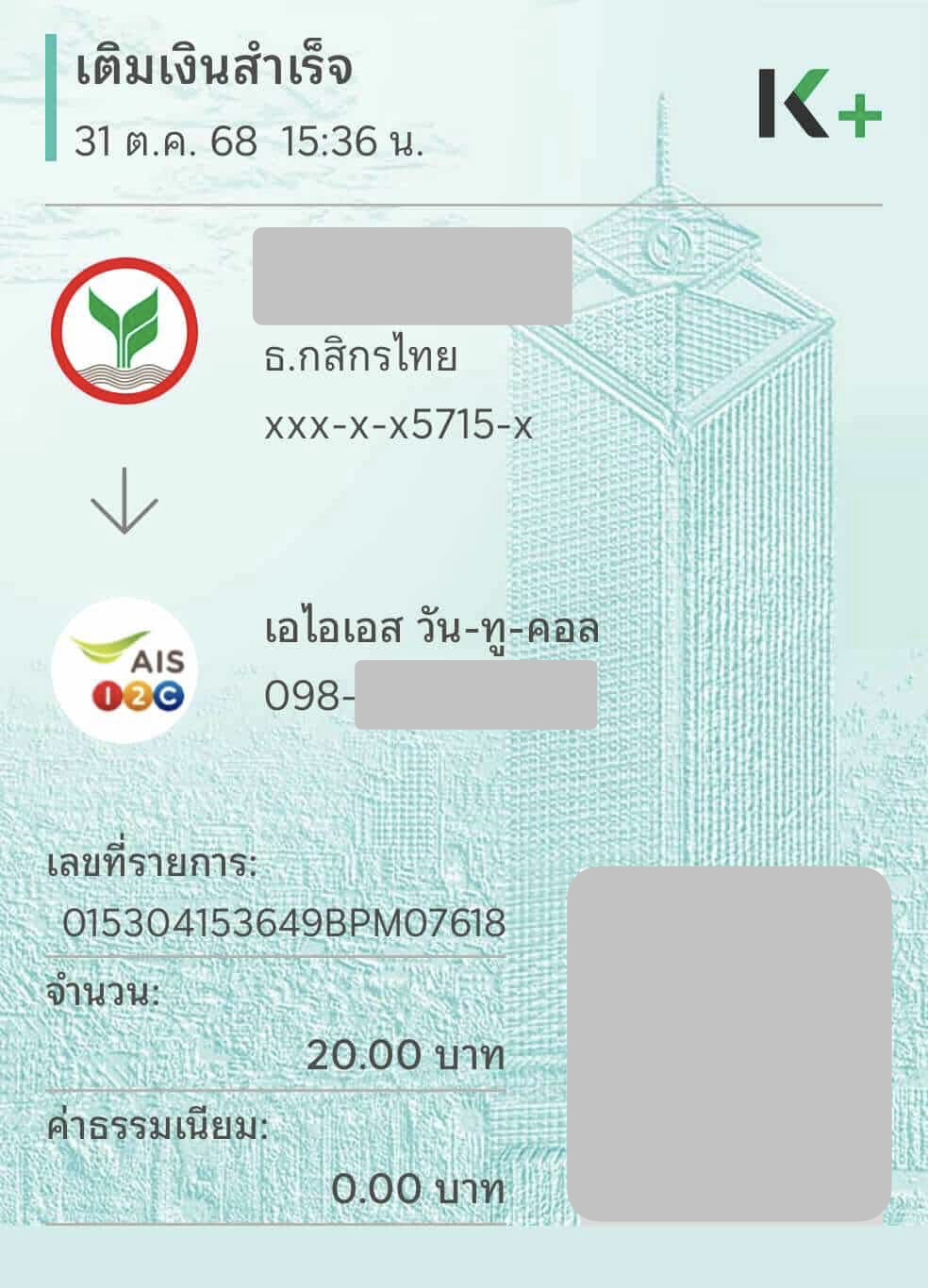 เติมเงินเครือข่าย AIS แล้วไม่เข้า