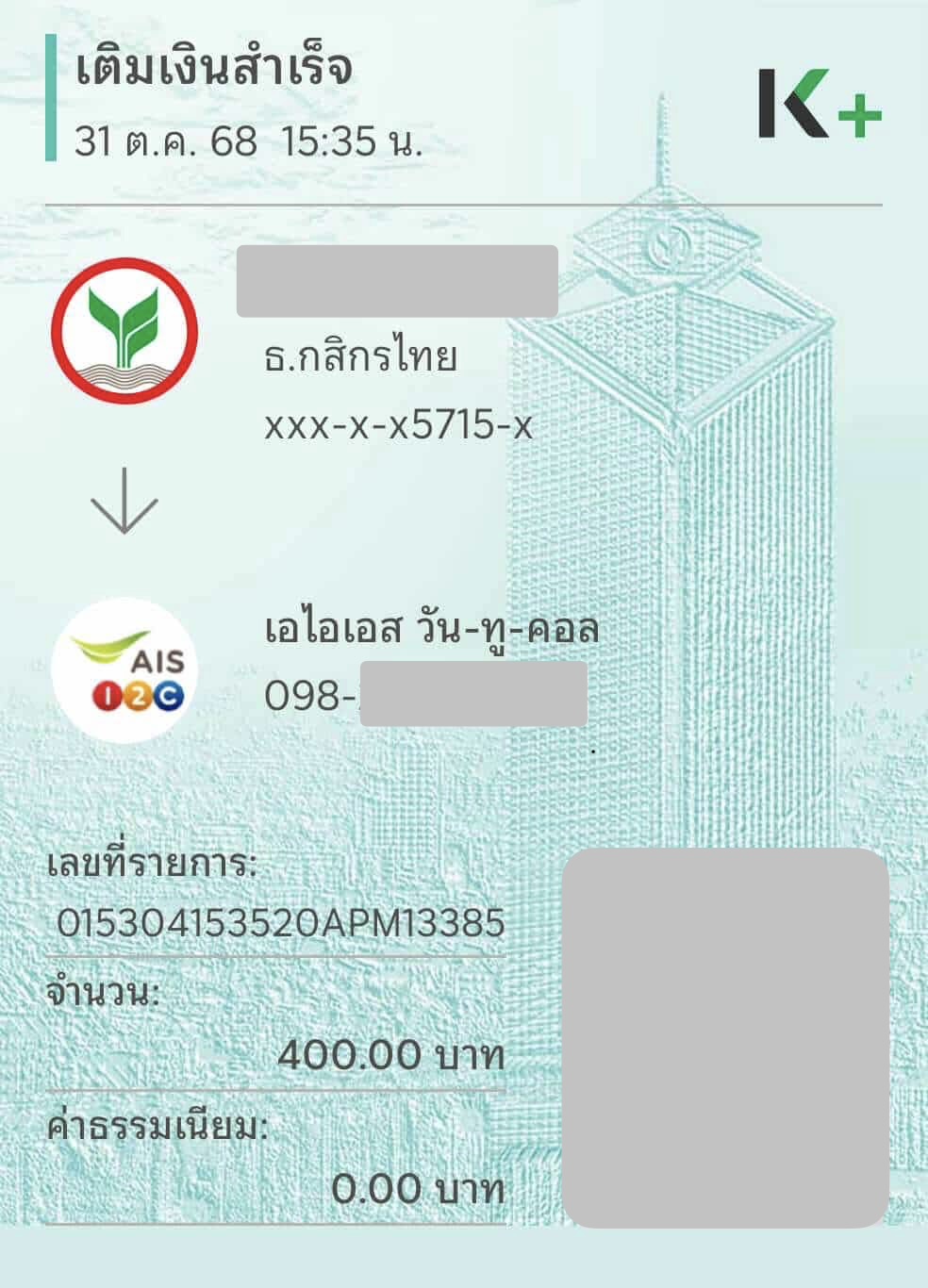 เติมเงินเครือข่าย AIS แล้วไม่เข้า