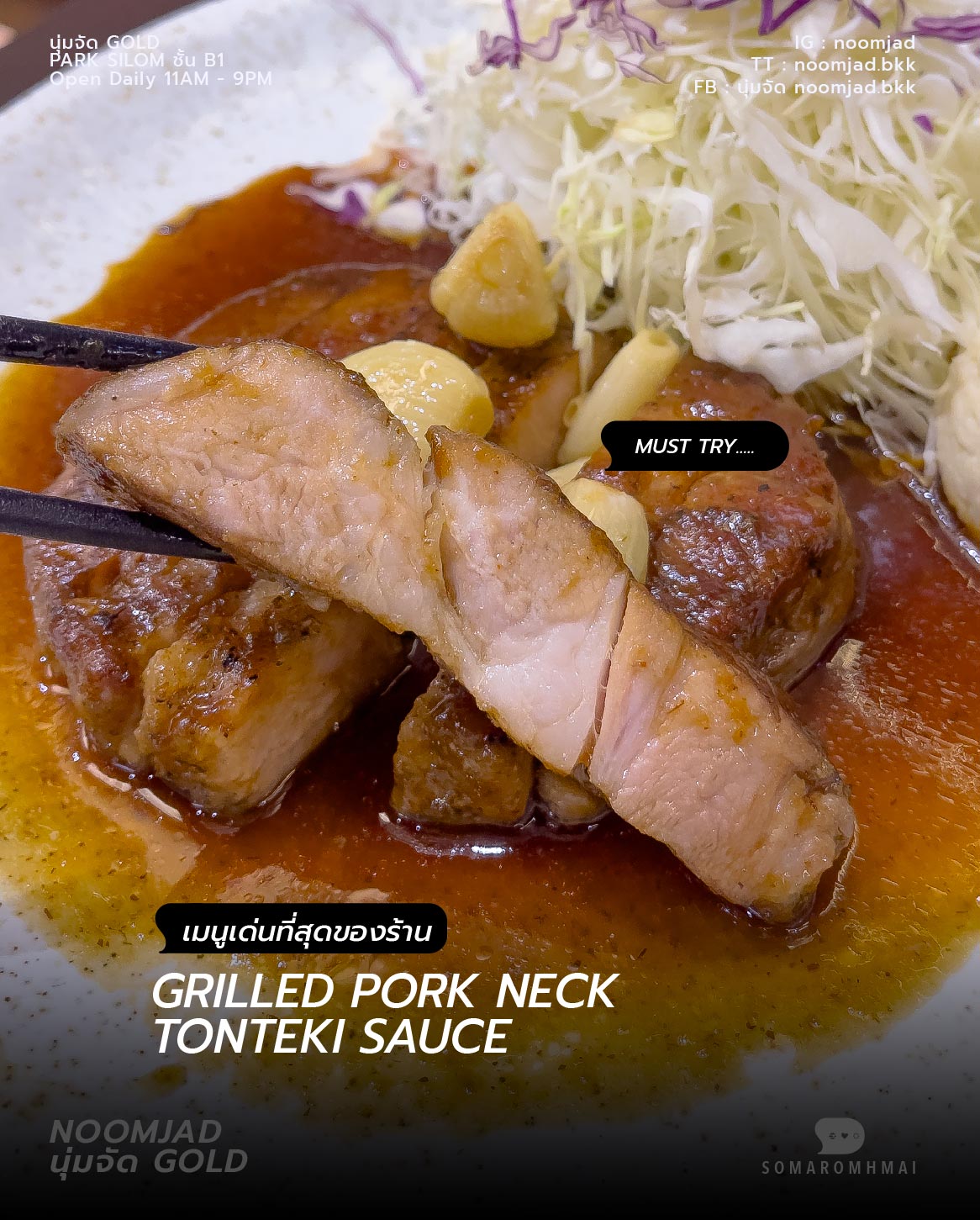 เป็นเมนูเด่นที่สุดของร้าน คือการใช้ หมูขุนสันคอคัดเกรดA มันแทรก ชิ้นหนานำไปทำให้สุกด้วยวิธีการ Sous Vide(ซูวี) ในอุณหภูมิความร้อนที่เหมาะสม เป็นระยะเวลา 2 ชั่วโมง โดยวิธีการนี้จะทำให้เนื้อหมูคงความนุ่มชุ่มฉ่ำ(juicy)มีสีสวยขาวอมชมพู สุกสามารถทานได้ ราดด้วยซอสโชยุมิโซะแดงสูตรพิเศษของร้านนุ่มจัด อร่อยเข้มข้นลงตัว