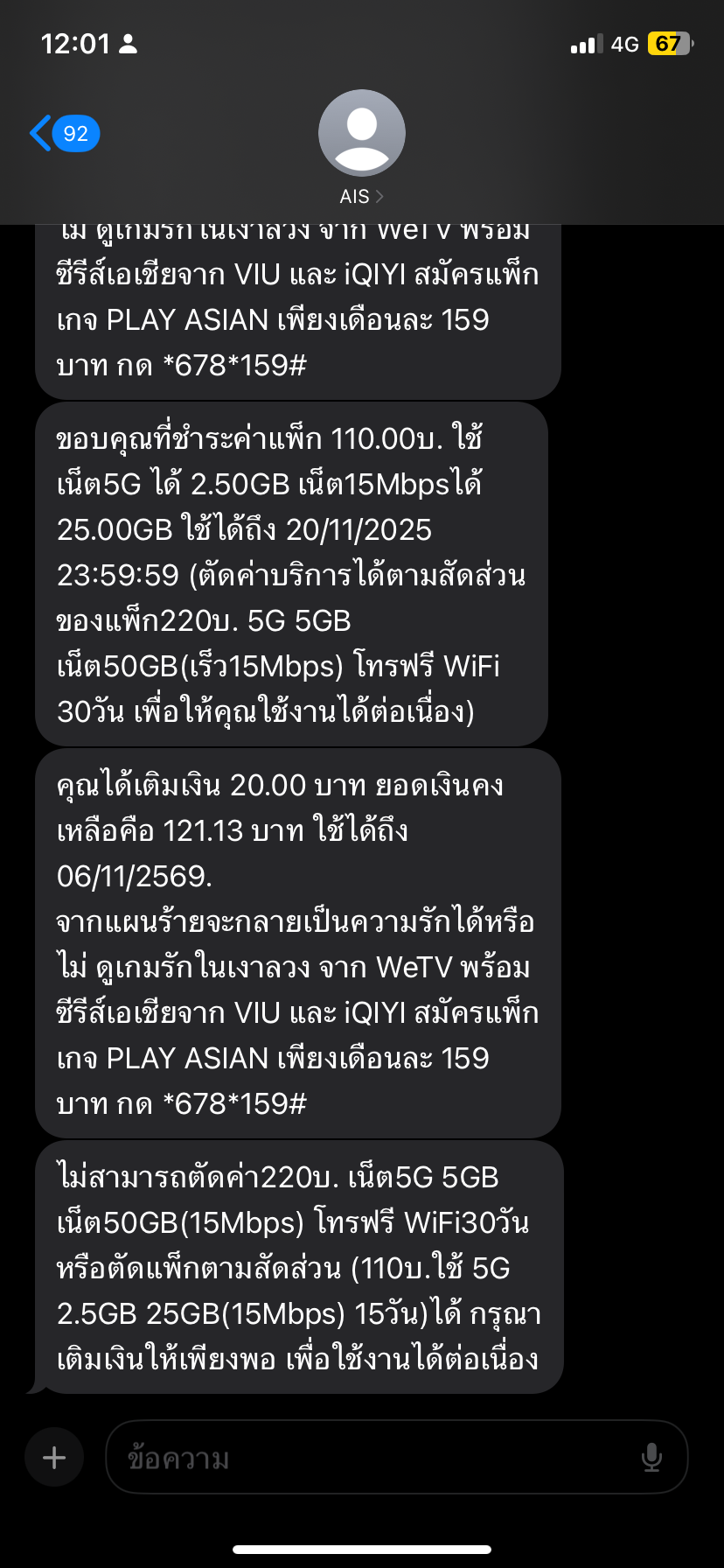 Ais เติมไปแล้วแต่ไม่ชำระแพ็คเน็ต?