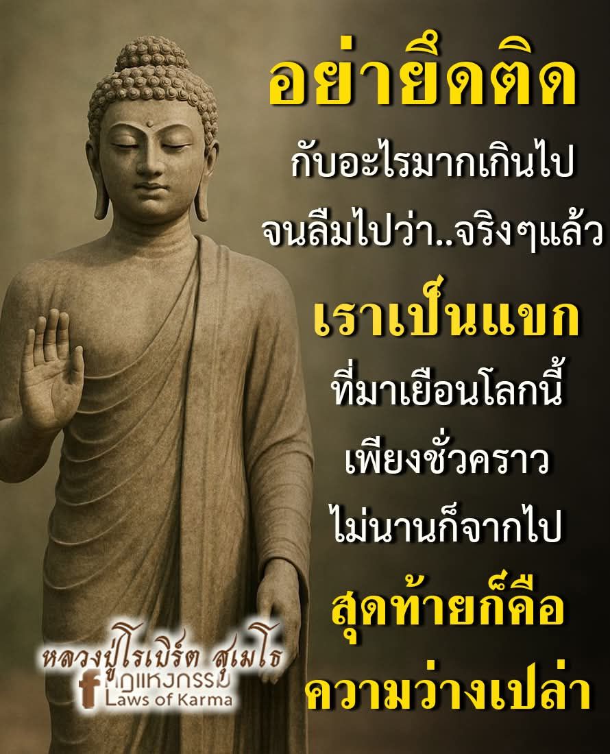 อย่ายึดติดกับอะไรให้มากเกินไป จนลืมไปว่าจริงๆแล้วเราเป็นแค่แขกที่มาเยือนโลกนี้ ไม่นานก็จากไปสุดท้ายแล้วก็ว่างเปล่า