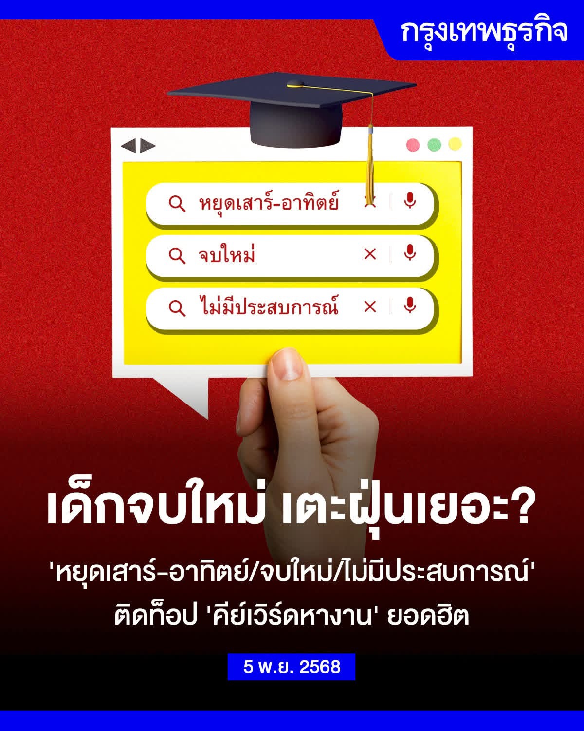 เด็กจบใหม่เตะฝุ่นเยอะ? คีย์เวิร์ดหางานยอดฮิต “หยุดเสาร์-อาทิตย์/จบใหม่/ไม่มีประสบการณ์” มาแรงสุด