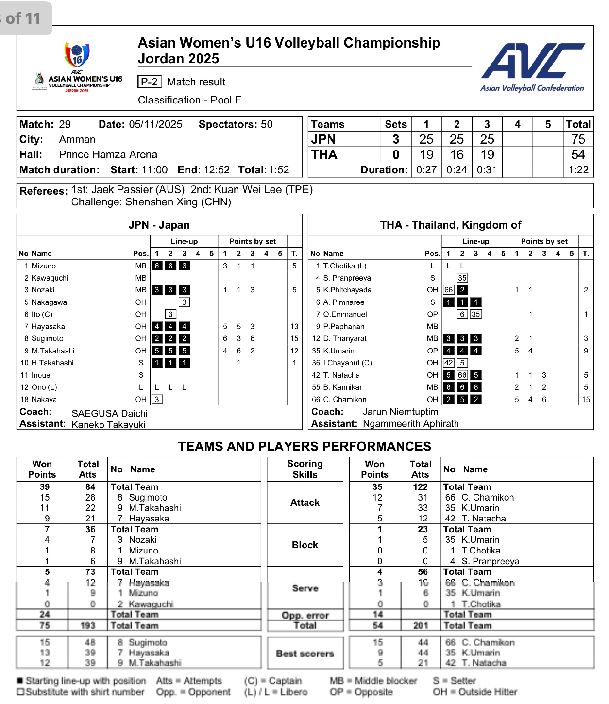 สถิติ Thailand🇹🇭0-3Japan🇯🇵 Asian Women’s U16 Volleyball Championship 2025🇯🇴 | ออมออม15คะแนน