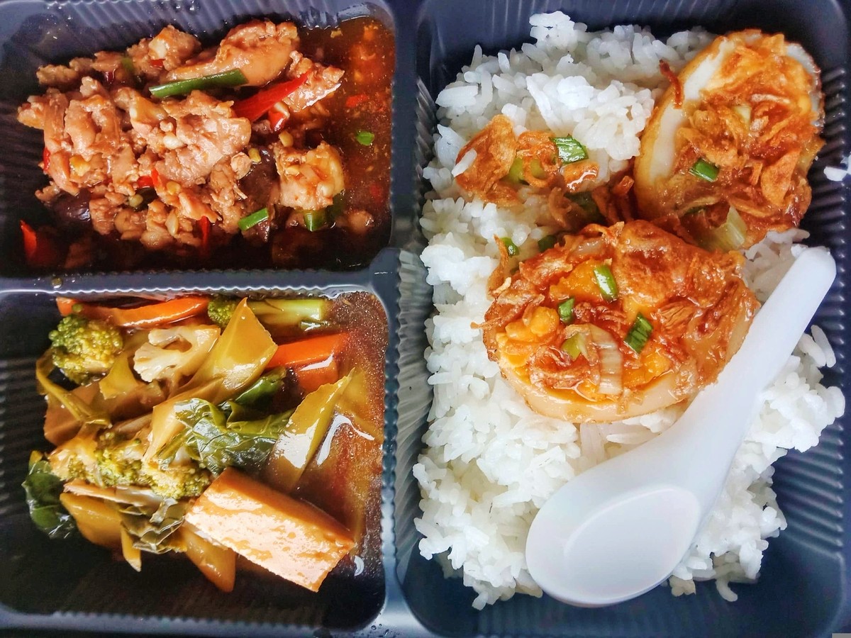 คะน้าหมูชิ้น + กะเพราไก่ + ไข่ลูกเขย 🍱