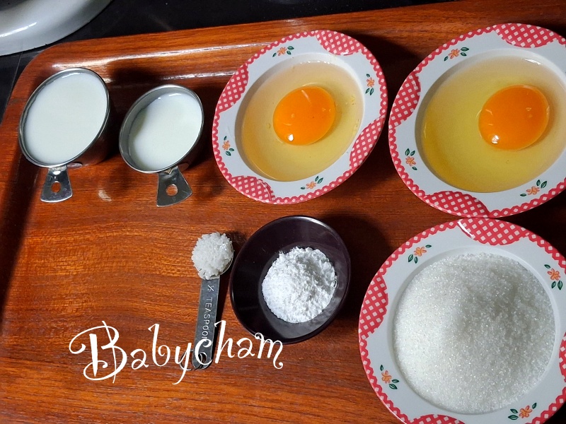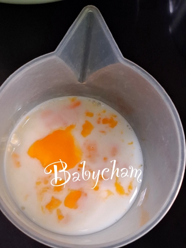 7. นมสด *** นำไข่+นมสด ชั่งรวมกันให้ได้ปริมาณ 150 กรัม