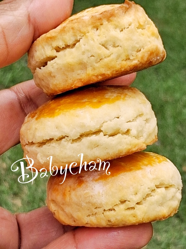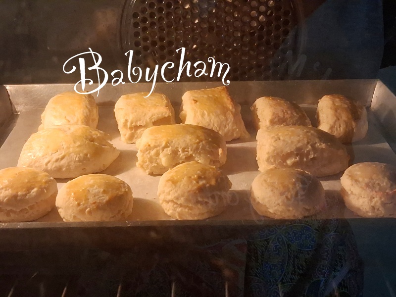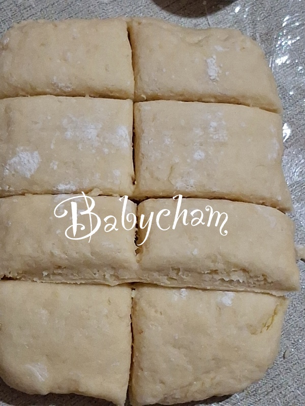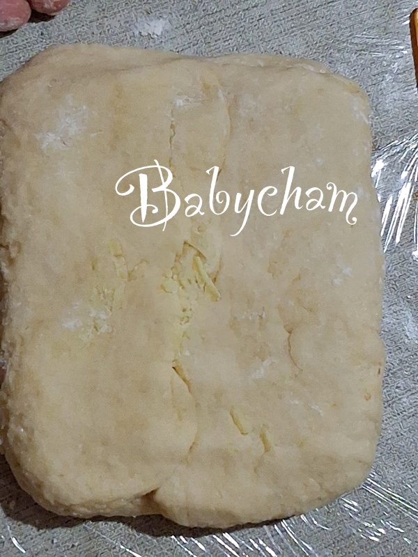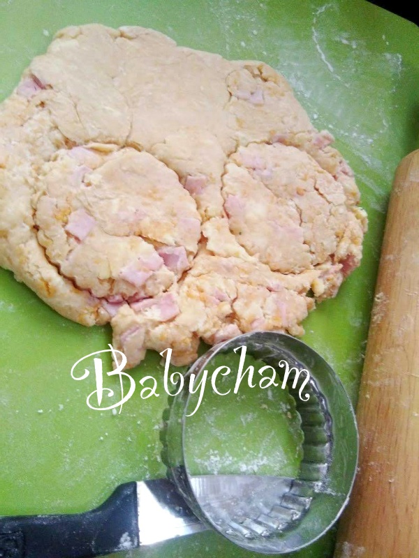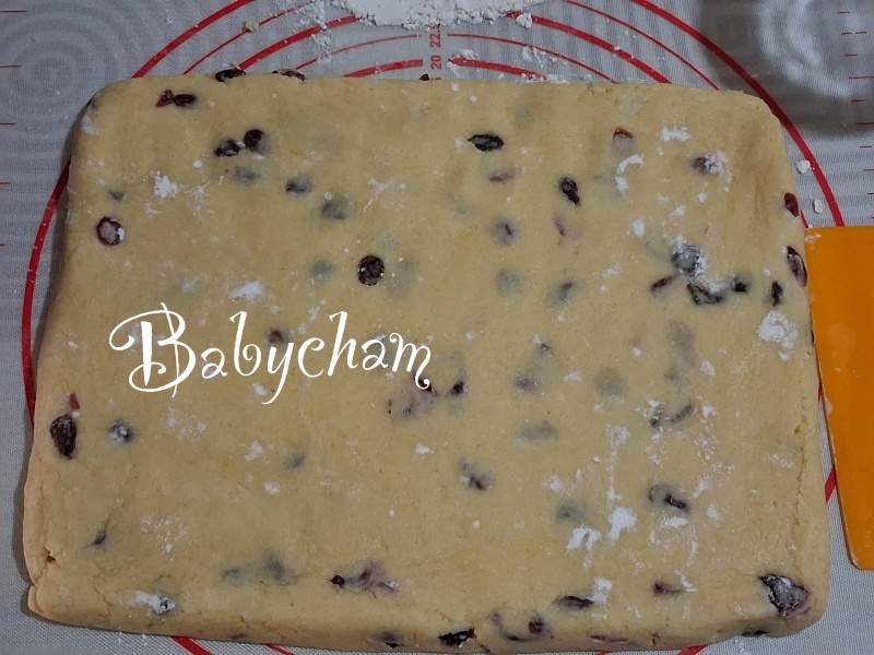 **** แป้งสโคนที่ได้จะมีความนิ่มที่มือสัมผัสได้ กดพิมพ์ลงตรงๆ ถ้าตัดแล้วหมุน หรือใช้มือแตะ/จับยกด้านข้างแป้งวางในถาด จะทำให้แป้งไม่ฟูเป็นชั้นสวยๆ