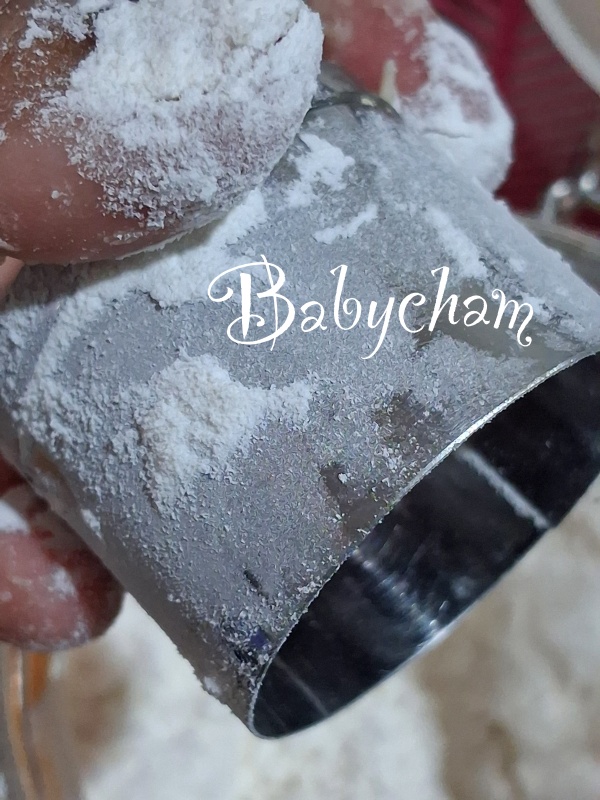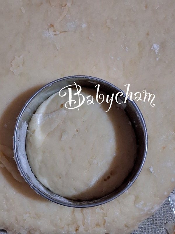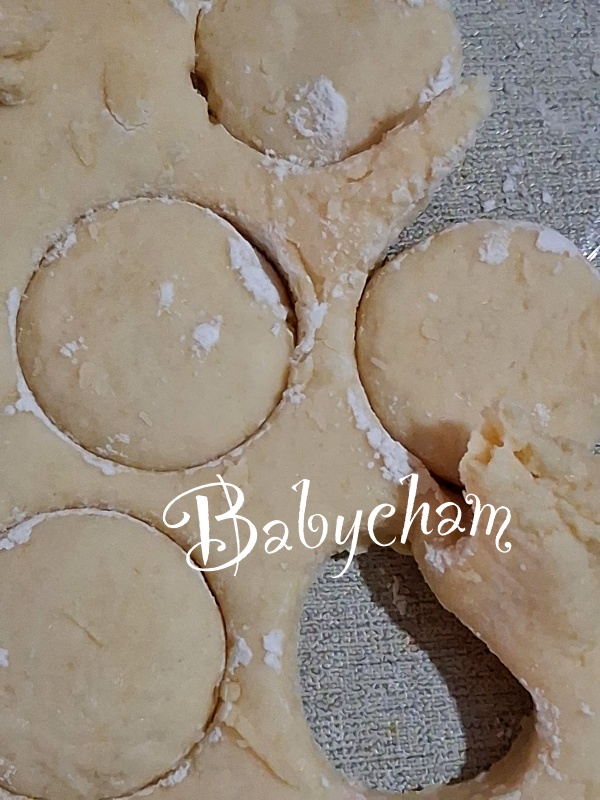 ยกพิมพ์วงแหวนขึ้นมาแป้งสโคนจะติดขึ้นมาเลย แต่....ถ้าจุ่มแป้งมากไป ก็จะทำให้สโคนไม่ขึ้นชั้นฟูได้เหมือนกัน