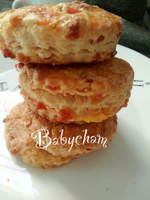 มาทำแบบใส่ชีสพาร์เมซานลงไปบ้าง แต่ถ้าคนอังกฤษที่เคร่งๆ เขาจะมองว่านี่ไม่ใช่สโคนตามตำรับอังกฤษนะคะ (ทำนองเดียวกับที่ เชฟเจมี่ โอลิเวอร์ ทำแกงเขียวหวานไทยใส่หอมใหญ่ มะเขือเทศ มันฝรั่ง อะไรแบบนั้นเลยละ 55)