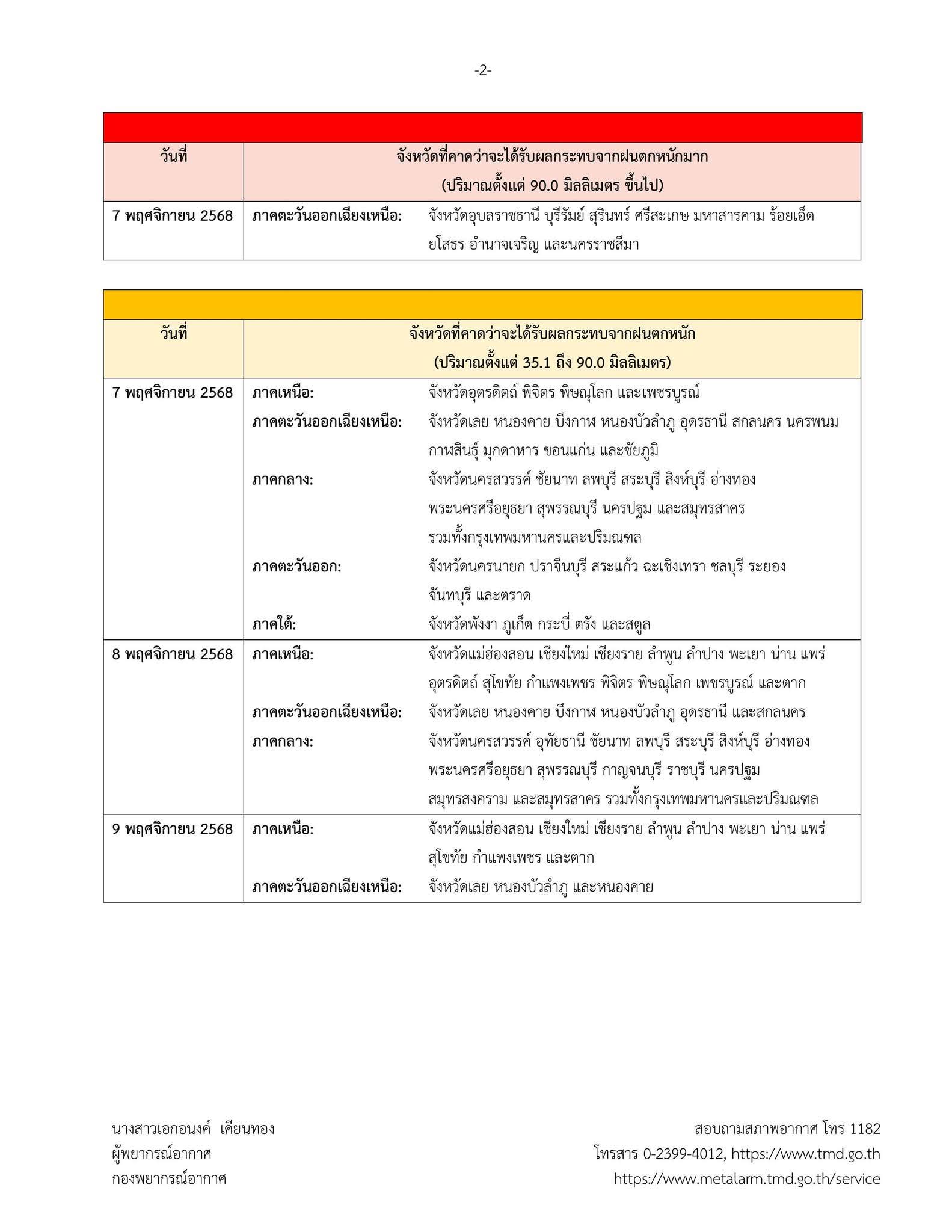 • เฝ้าระวัง ฝนตกหนัก น้ำท่วมฉับพลัน น้ำป่าไหลหลาก