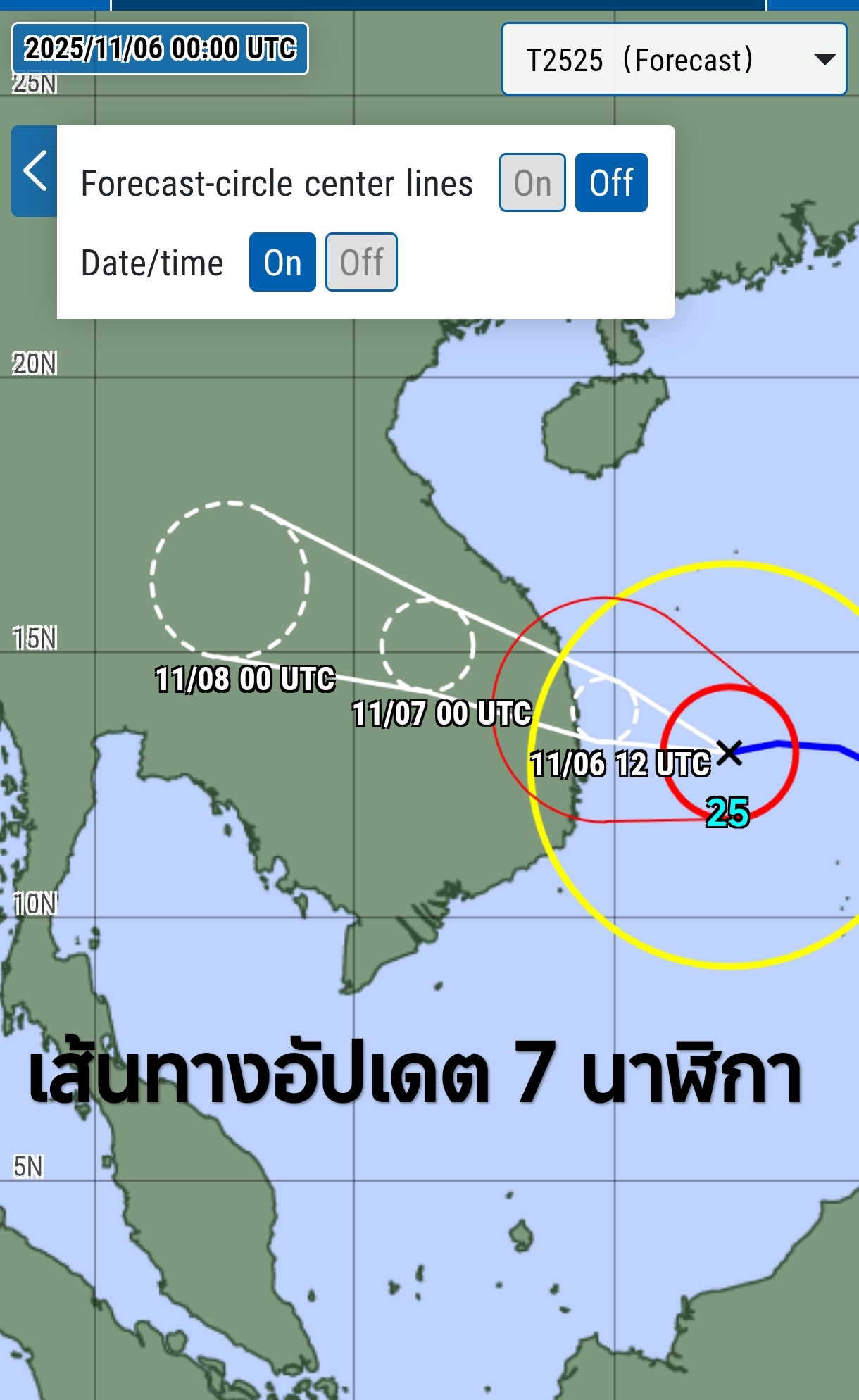และคาดว่าจะ เคลื่อนขึ้นฝั่งประเทศเวียดนามตอนกลางช่วงวันที่ 6–7 พ.ย. 68