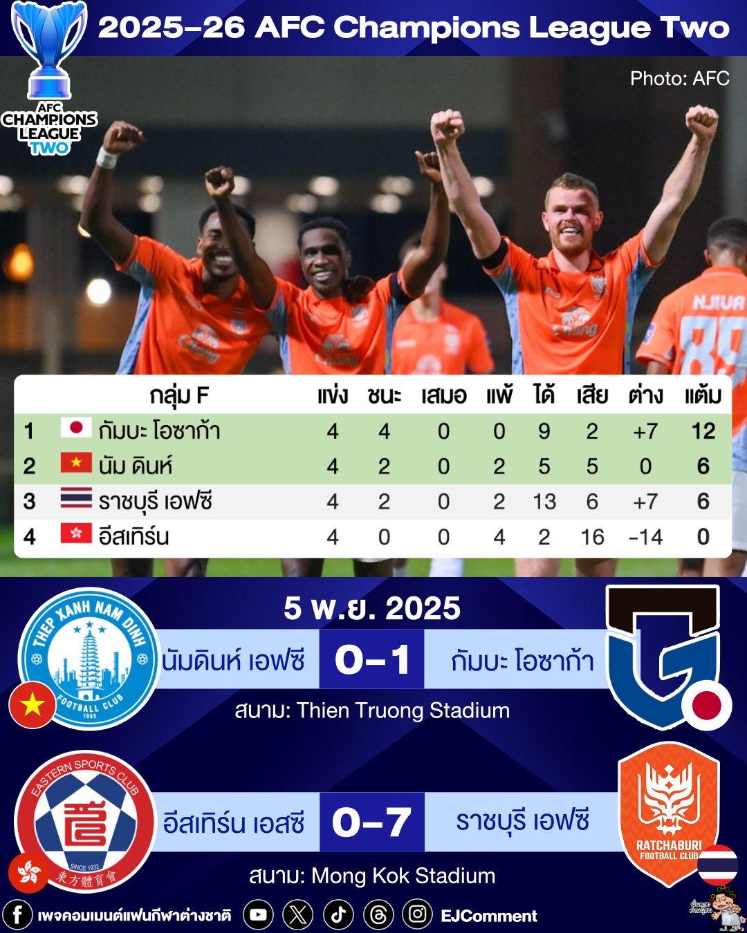 เอาสองทีมเข้ารอบ.อีก2นัด.เจอนัมดินที่บ้านราชบุรีต้องชนะ3-1.. นัดเหย้า,ไปเยือมกัมบะที่เข้ารอบไปแล้ว เสมอมาได้ถือว่าโชคดีมากๆ