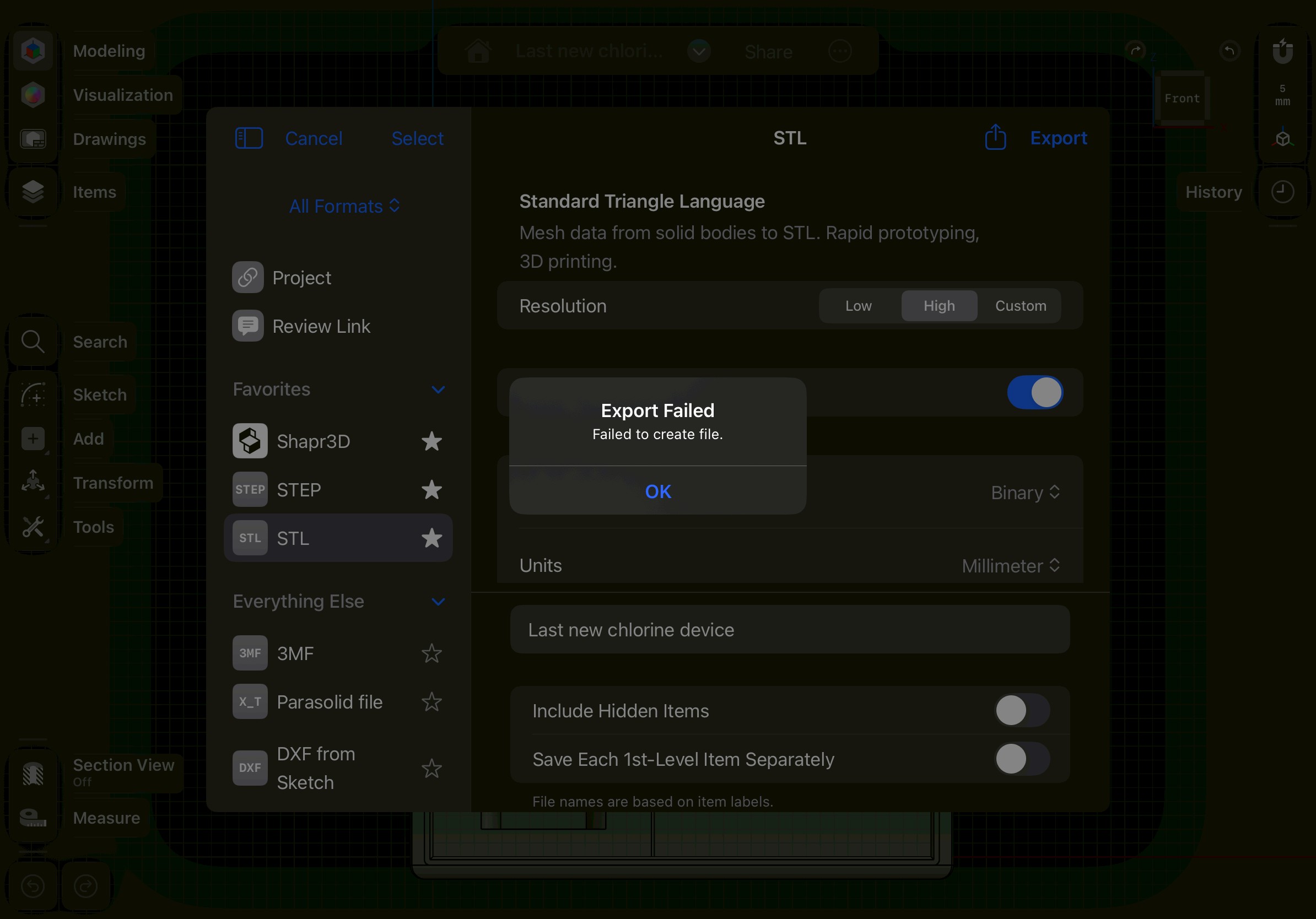 ทำไมถึง export เป็น stl ใน shapr3D ไม่ได้
