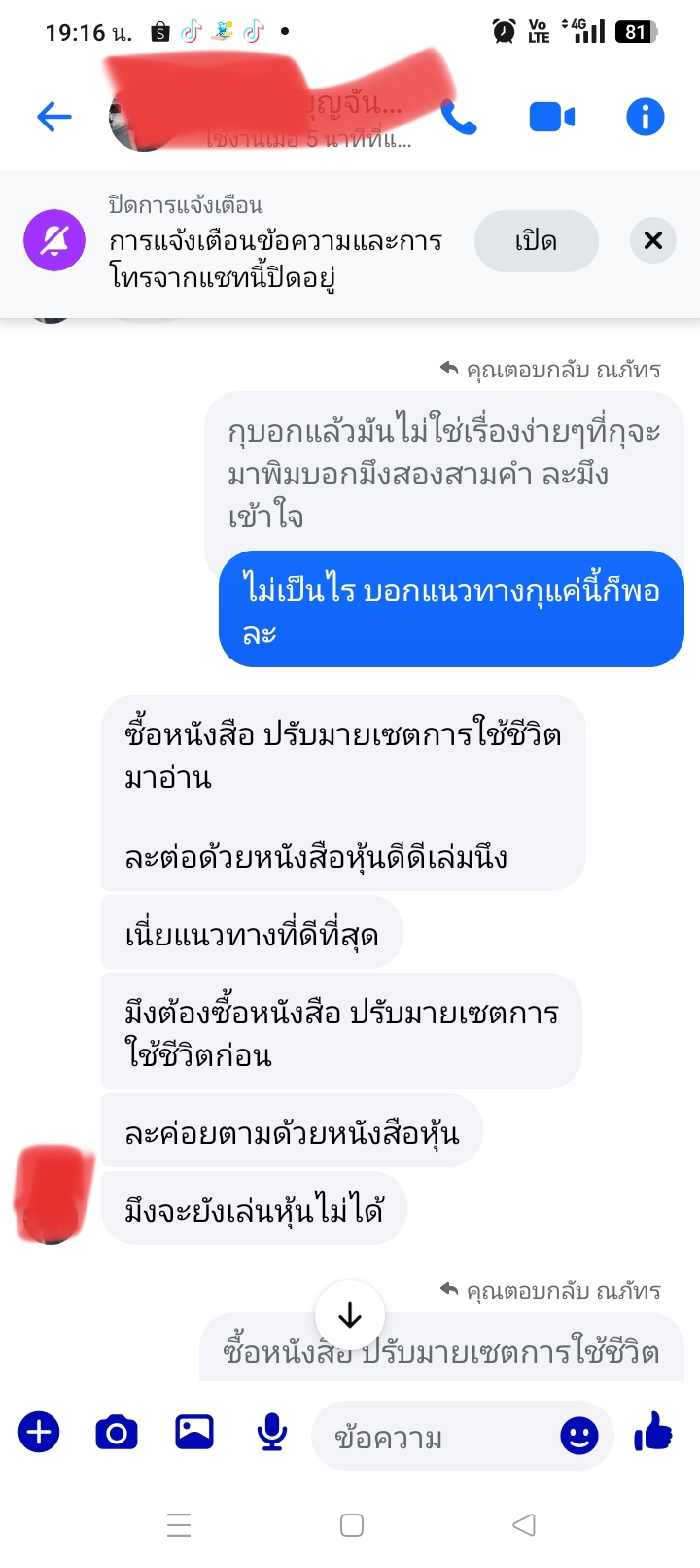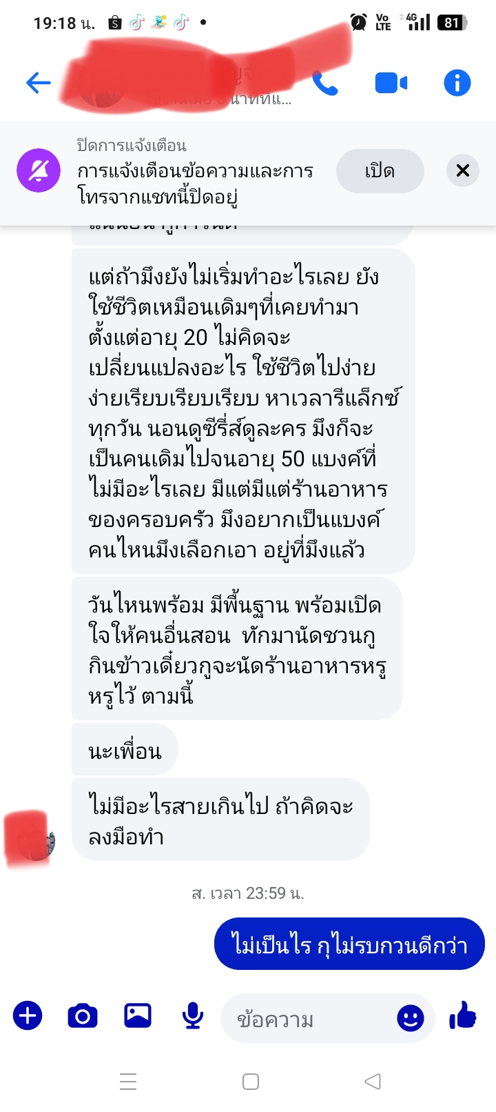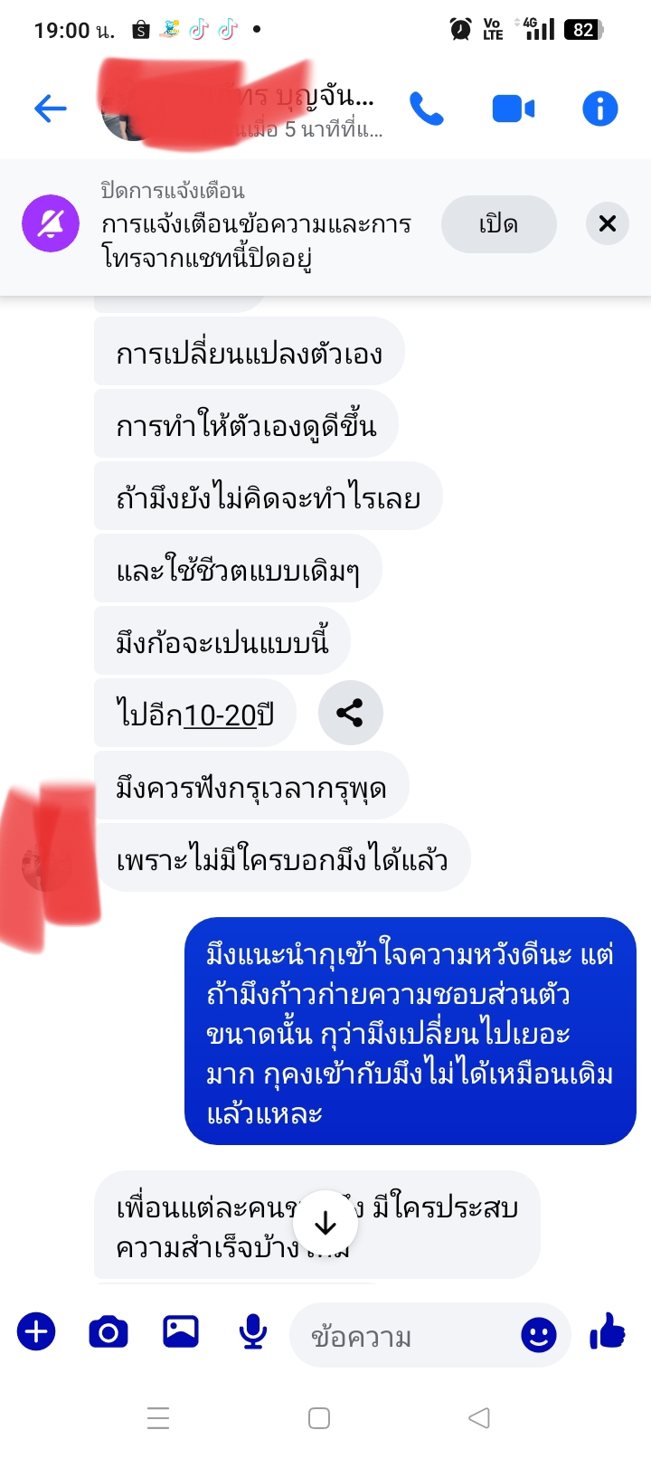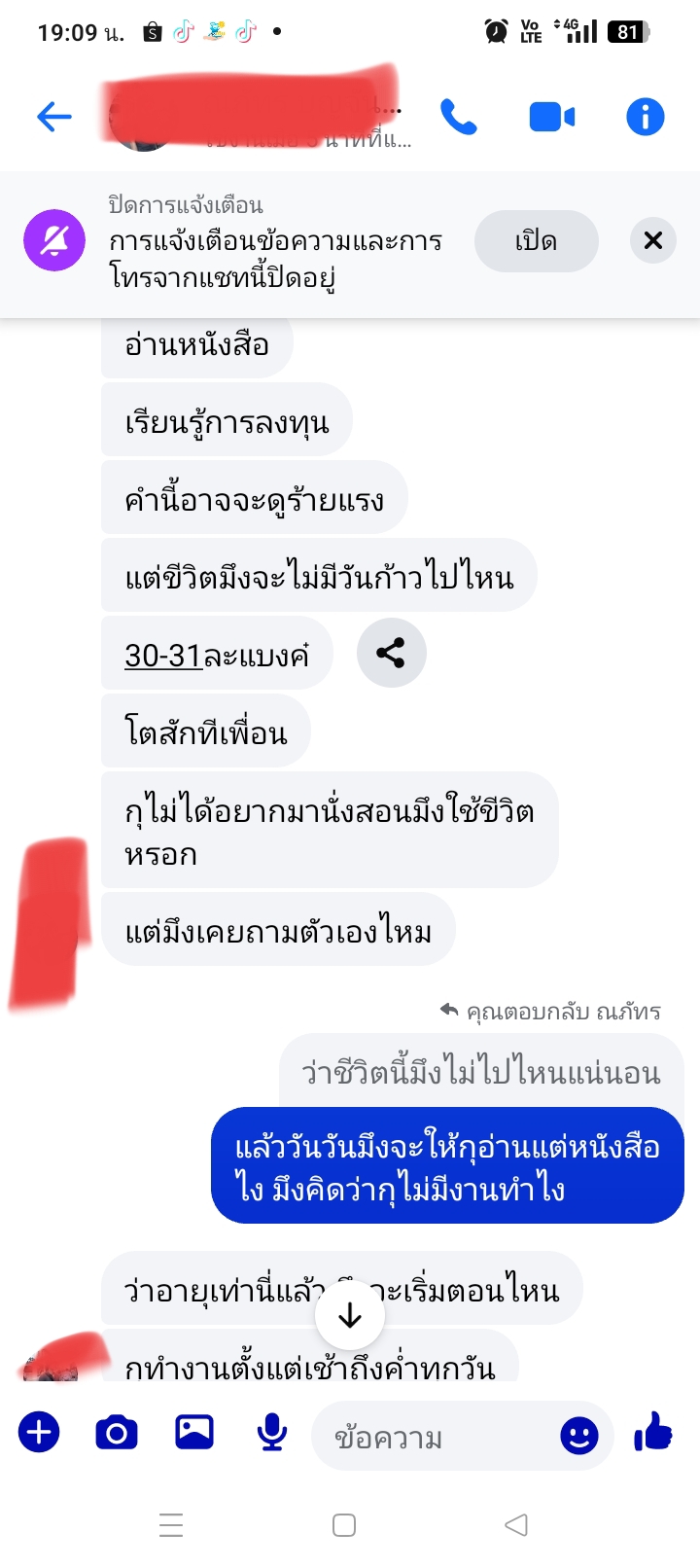 คือบอกก่อนนะ ผมกับไอ้เพื่อนเก่าคนนี้เคยเรียนมัธยมด้วยกัน เคยสนิทกันมากเมื่อ10ปีก่อน เรียนจบก็แยกย้ายกันไปเติบโตทางใครทางมัน ระหว่างเรียนผมก็ทำงานพิเศษไปด้วย จนจบป.ตรี ผมก็หาสมัครงานที่ต่างๆเป็น10ๆที่มันก็มีทั้งเราไม่เหมาะกับงาน(ทดลองงานเกือบ3เดือนแต่ไม่ใช่จริงๆเข้ากับหัวหน้าและเพื่อนร่วมงานไม่ได้) และงานที่ไม่เหมาะกับเรา ตระเวนหาไปเรื่อยๆหลายๆที่แต่คิดคำนวนค่าครองชีพ การเดินทาง ค่าต่างๆเพราะต้องอยู่คนเดียวกับเงินเดือนแต่ละที่หมื่น2หมื่น3แล้วมันไม่รอดจริงๆไม่เหลือเก็บ เลยตัดสินใจมาทำร้านอาหารกับครอบครัวดีกว่า อย่างน้อยๆใกล้ห้องเราไม่ต้องเสียค่าเดินทาง ค่าข้าว หลังหักค่าใช้จ่ายจำเป็นแล้ว ผมเหลือเก็บเหลือใช้4พันต่อเดือน จนเพื่อนเก่าคนนี้ที่เคยสนิท10ปีก่อนกลับมาเจอมันเปลี่ยนไป แล้วบอกว่าตัวเองประสบความสำเร็จรวยเป็นล้าน ทำแบบพูดจายกตัวเองข่มผมแล้วบอกหวังดี แบบพูดบงการชีวิตผมทุกเรื่อง บางทีผมขอคำปรึกษาหุ้น แต่ได้มาเหมือนไม่มีคำปรึกษาดีๆเลย มีแต่คำที่ฟังดูกดผม สำหรับผมก็พัฒนาตัวเองไปเรื่อยในทางของตัวเอง และคิดว่าต่อให้เรารวยแล้วก็ไม่ควรไปทำตัวเที่ยวสอนวิจาร์ณใครแม้แต่เพื่อน เพราะความหวังดีที่เขาไม่ต้องการมันคือเสื_อก และปรึกษาเรื่องนึงแต่แทบจะไม่ได้คำปรึกษาตรงจุดเลย