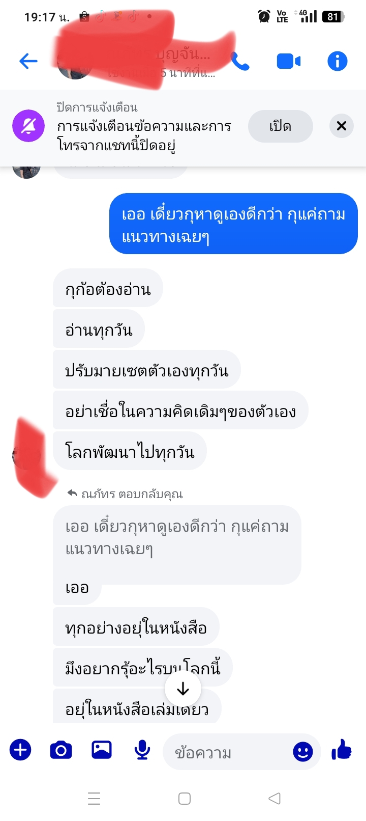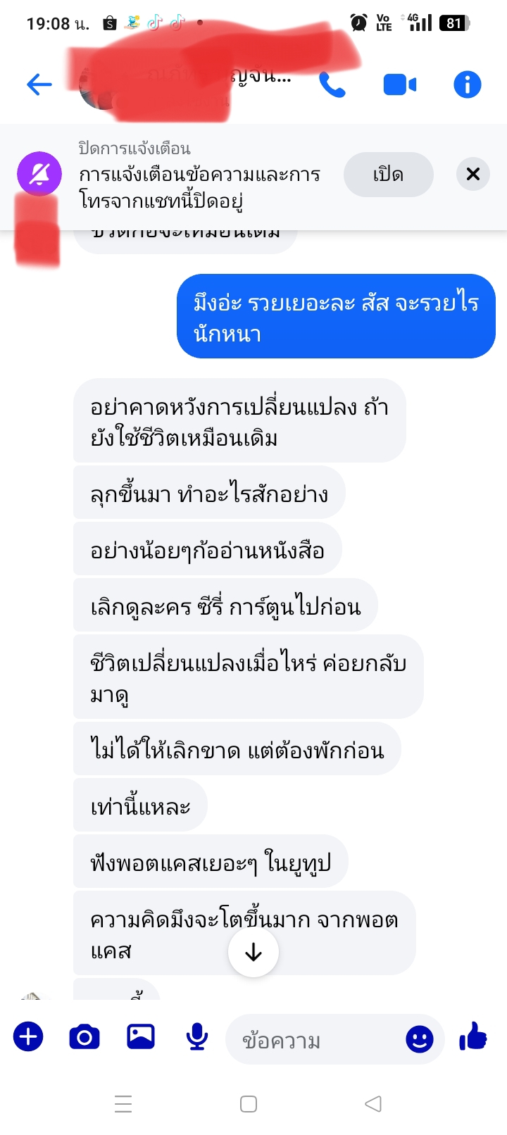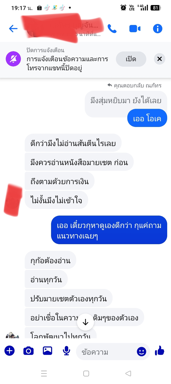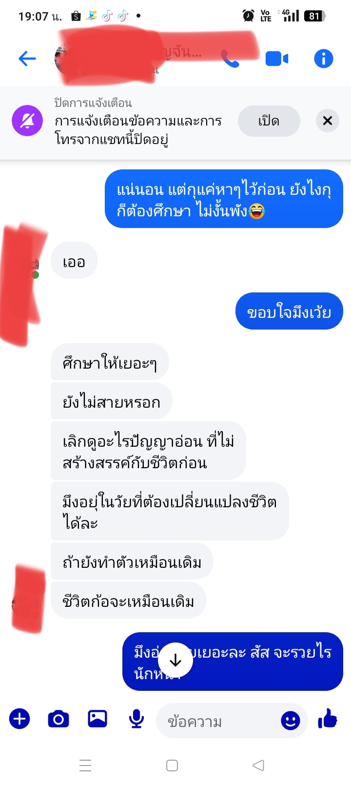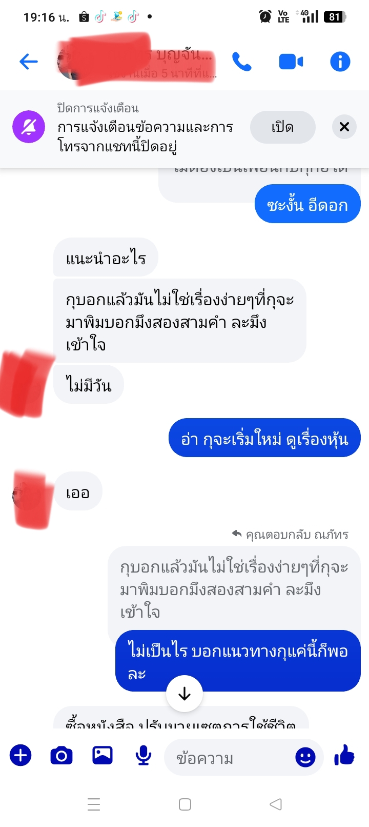 คือบอกก่อนนะ ผมกับไอ้เพื่อนเก่าคนนี้เคยเรียนมัธยมด้วยกัน เคยสนิทกันมากเมื่อ10ปีก่อน เรียนจบก็แยกย้ายกันไปเติบโตทางใครทางมัน ระหว่างเรียนผมก็ทำงานพิเศษไปด้วย จนจบป.ตรี ผมก็หาสมัครงานที่ต่างๆเป็น10ๆที่มันก็มีทั้งเราไม่เหมาะกับงาน(ทดลองงานเกือบ3เดือนแต่ไม่ใช่จริงๆเข้ากับหัวหน้าและเพื่อนร่วมงานไม่ได้) และงานที่ไม่เหมาะกับเรา ตระเวนหาไปเรื่อยๆหลายๆที่แต่คิดคำนวนค่าครองชีพ การเดินทาง ค่าต่างๆเพราะต้องอยู่คนเดียวกับเงินเดือนแต่ละที่หมื่น2หมื่น3แล้วมันไม่รอดจริงๆไม่เหลือเก็บ เลยตัดสินใจมาทำร้านอาหารกับครอบครัวดีกว่า อย่างน้อยๆใกล้ห้องเราไม่ต้องเสียค่าเดินทาง ค่าข้าว หลังหักค่าใช้จ่ายจำเป็นแล้ว ผมเหลือเก็บเหลือใช้4พันต่อเดือน จนเพื่อนเก่าคนนี้ที่เคยสนิท10ปีก่อนกลับมาเจอมันเปลี่ยนไป แล้วบอกว่าตัวเองประสบความสำเร็จรวยเป็นล้าน ทำแบบพูดจายกตัวเองข่มผมแล้วบอกหวังดี แบบพูดบงการชีวิตผมทุกเรื่อง บางทีผมขอคำปรึกษาหุ้น แต่ได้มาเหมือนไม่มีคำปรึกษาดีๆเลย มีแต่คำที่ฟังดูกดผม สำหรับผมก็พัฒนาตัวเองไปเรื่อยในทางของตัวเอง และคิดว่าต่อให้เรารวยแล้วก็ไม่ควรไปทำตัวเที่ยวสอนวิจาร์ณใครแม้แต่เพื่อน เพราะความหวังดีที่เขาไม่ต้องการมันคือเสื_อก และปรึกษาเรื่องนึงแต่แทบจะไม่ได้คำปรึกษาตรงจุดเลย
