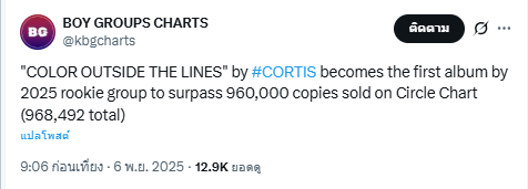 "COLOR OUTSIDE THE LINES" โดย CORTIS กลายเป็นอัลบั้มแรกของกลุ่มศิลปินหน้าใหม่ในปี 2025 ที่มียอดขายเกิน 960,000 ชุด