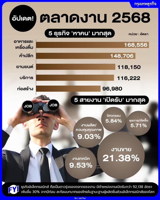 💼 อัปเดตตลาดงาน 2568 — 5 อุตสาหกรรมยังร้อนแรง! “อาหาร-ค้าปลีก-EV” แรงไม่หยุด 🔥
