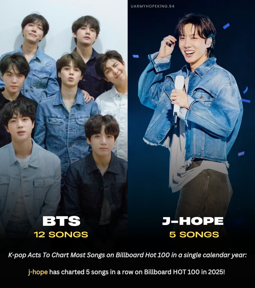 ✨ J-HOPE เป็นศิลปินเดี่ยว KPOP ที่มีเพลงติดชาร์ต Billboard Hot 100 ได้มากที่สุดภายในปีปฏิทินเดียวถึง 5 เพลง