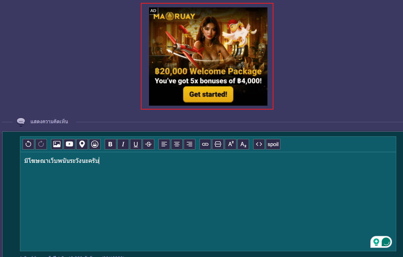 เว็บพันทิป เดี๋ยวนี้มีโฆษณาเว็บพนันแล้วเหรอครับ