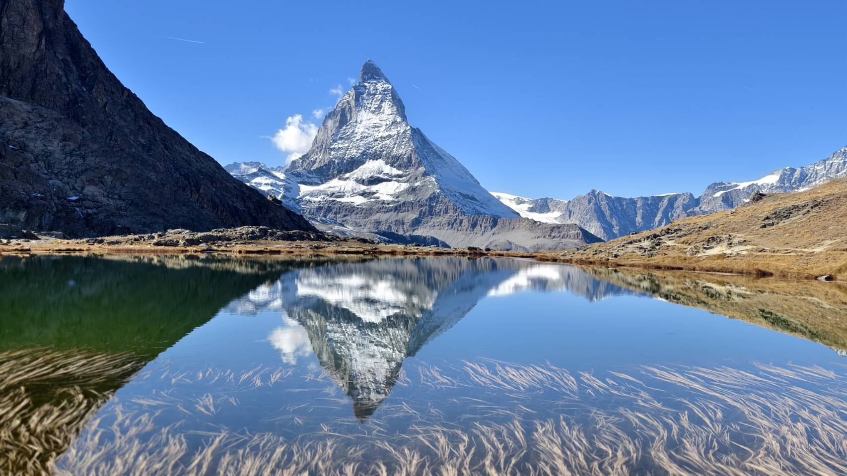 ขึ้นรถต่อมาเราข้ามสถานีนึง และแวะ สถานี Roten Boden เมื่อเดินไปเห็น แนวเขาหิน เบื้องหลังเป็น Matterhotrn ช่างดูสวยงามราวกับภาพวาด อากาศด้านบนสดชื่น แต่ก็แฝงไปด้วยความหนาวเย็น เดินลงมาด้านล่าง เพื่อดูทะเลสาบ Riffelsee ดูเงาสะท้อนน้ำของ Matterhorn สวยงามราวภาพวาด นอกจากนี้ยังมีความคลาสสิกของต้นไม้น้ำที่เรียงตัวเป็นริ้วๆ บนผืนน้ำที่ใสมองเห็นด้านล่างยิ่งดูงามตา ผมใช้เวลาที่นี่นานมากทั้งนั่งพัก เก็บภาพด้าน Matterhorn และมุมที่เป็นหิมะ ต้นไม้ด้านบนจะค่อนข้างน้อยเนื่องจากอาการศหนาวเย็น