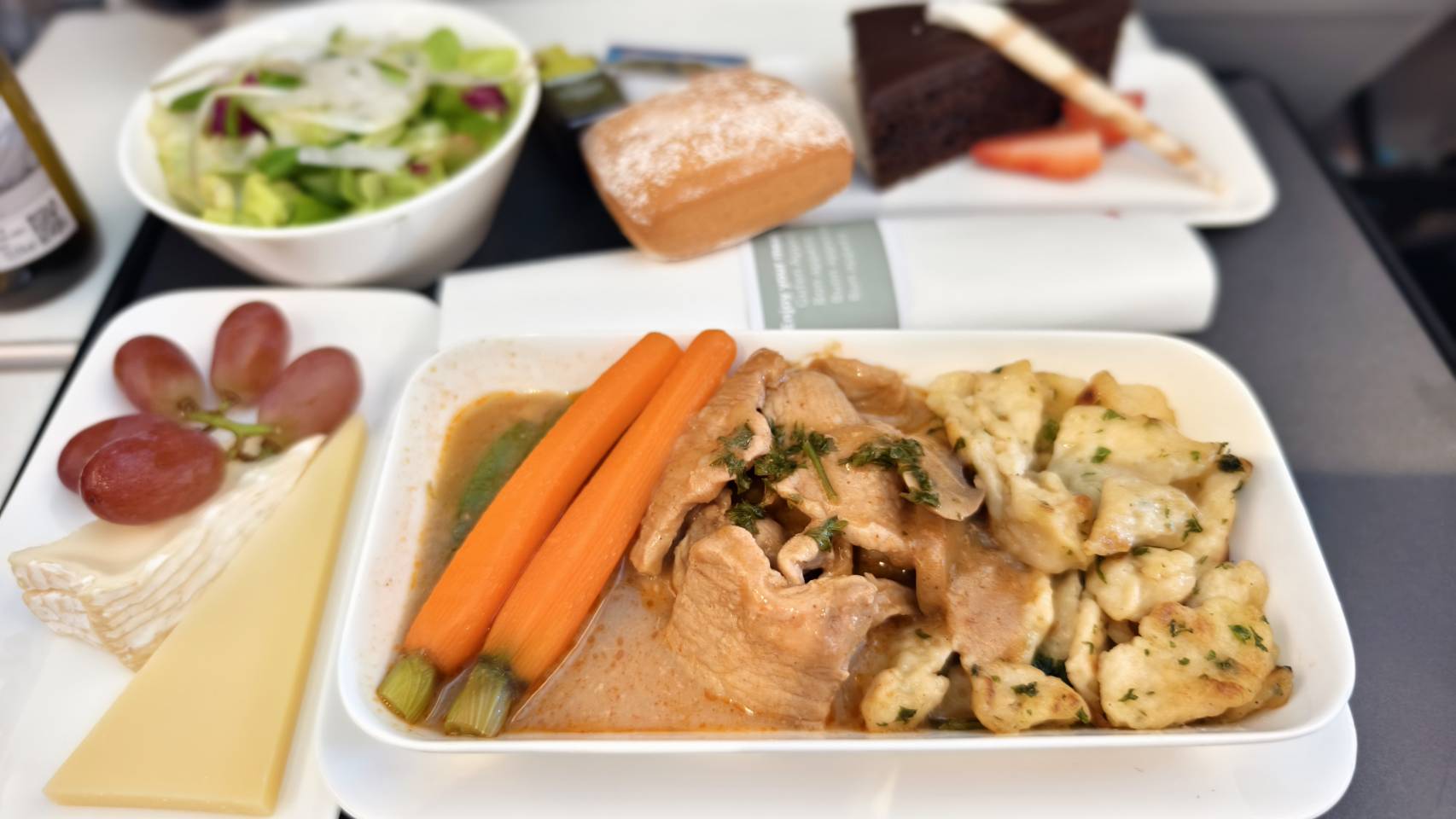 สำหรับสายการบินที่เดินทางคือ Swiss Air เนื่องจากต้องการ Stop over ที่นี่นั่นเองครับ โชคดีหน่อย ได้อัพเกรด เป็น Premium Eco เพราะไฟลท์ค่อนข้างแน่นเลยทีเดียว ข้อดีคือ เก้าอี้ไม่เบี้ยด เนื่องจากเก้าอี้จะมีคอกโลหะกันอยู่ทำให้เวลาเอนนอน ไม่ส่งผลกับคน่ข้างหลัง เวลาคนข้างหน้าเอนนอนเราก็ไม่มีปัญหากับถาดวางอาหาร