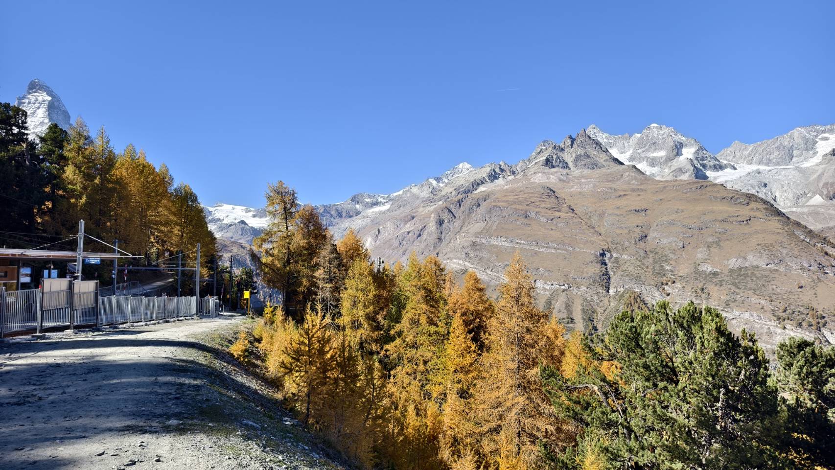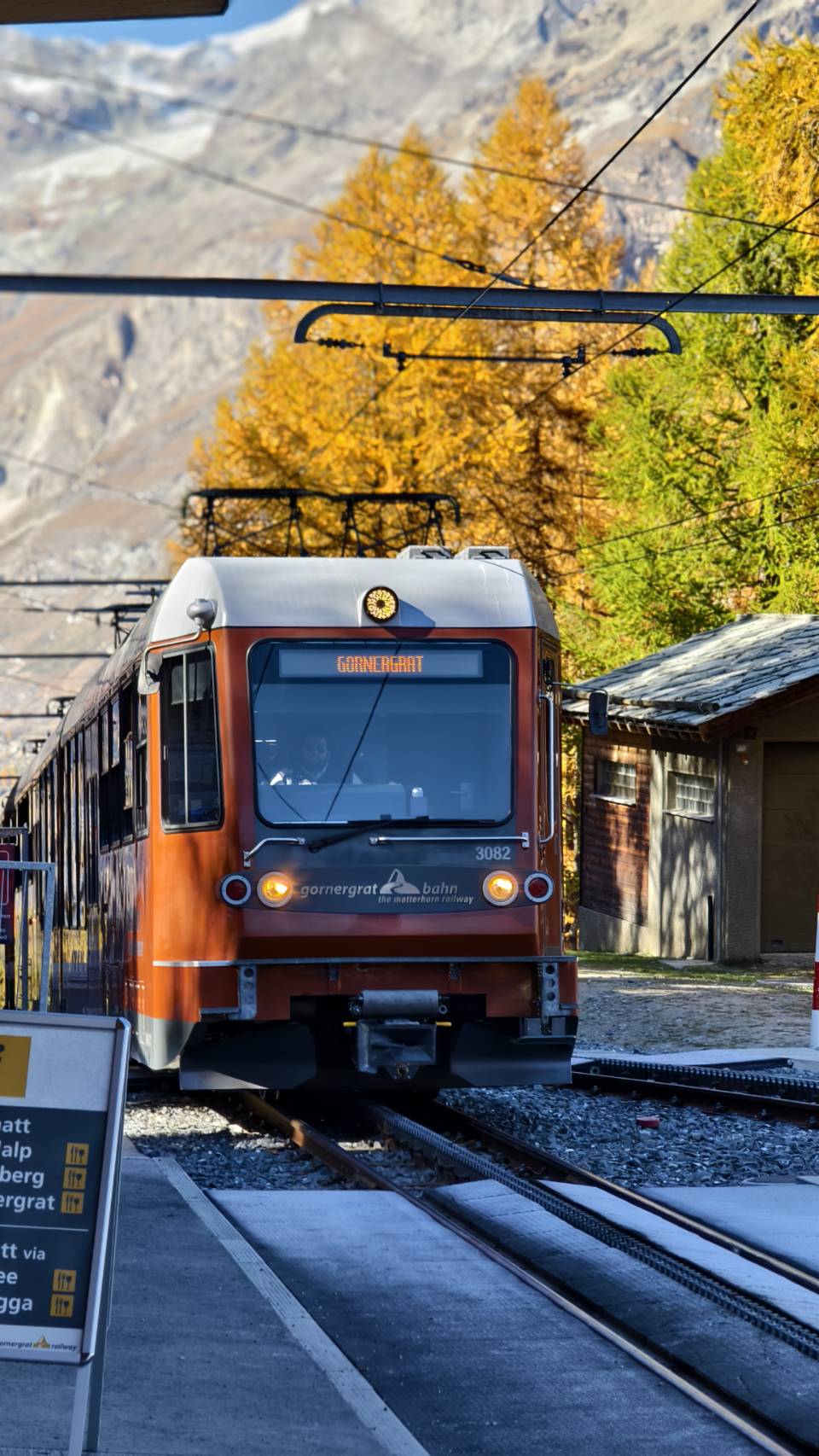 โดย เส้นทาง Gornergrat จะมีจุดหยุดพัก อยุ่ 5 จุด คือ RiffelAlp Rotenborden และ Gonergrat ผมเริ่มต้นกับจุดแรกค่อยๆลงทีละสถานี ระหว่างทาง ยังคงความสวยงามของฤดูใบไม้ร่วง ต้นไม้ต่างๆเปลี่ยนสีเป็นเหลืองส้ม บางต้นยังแซมสีเขียวยู่ตัดกับพื้นหลังของเทือกเขา และยอดเขาต่างได้ย่างสวยงาม