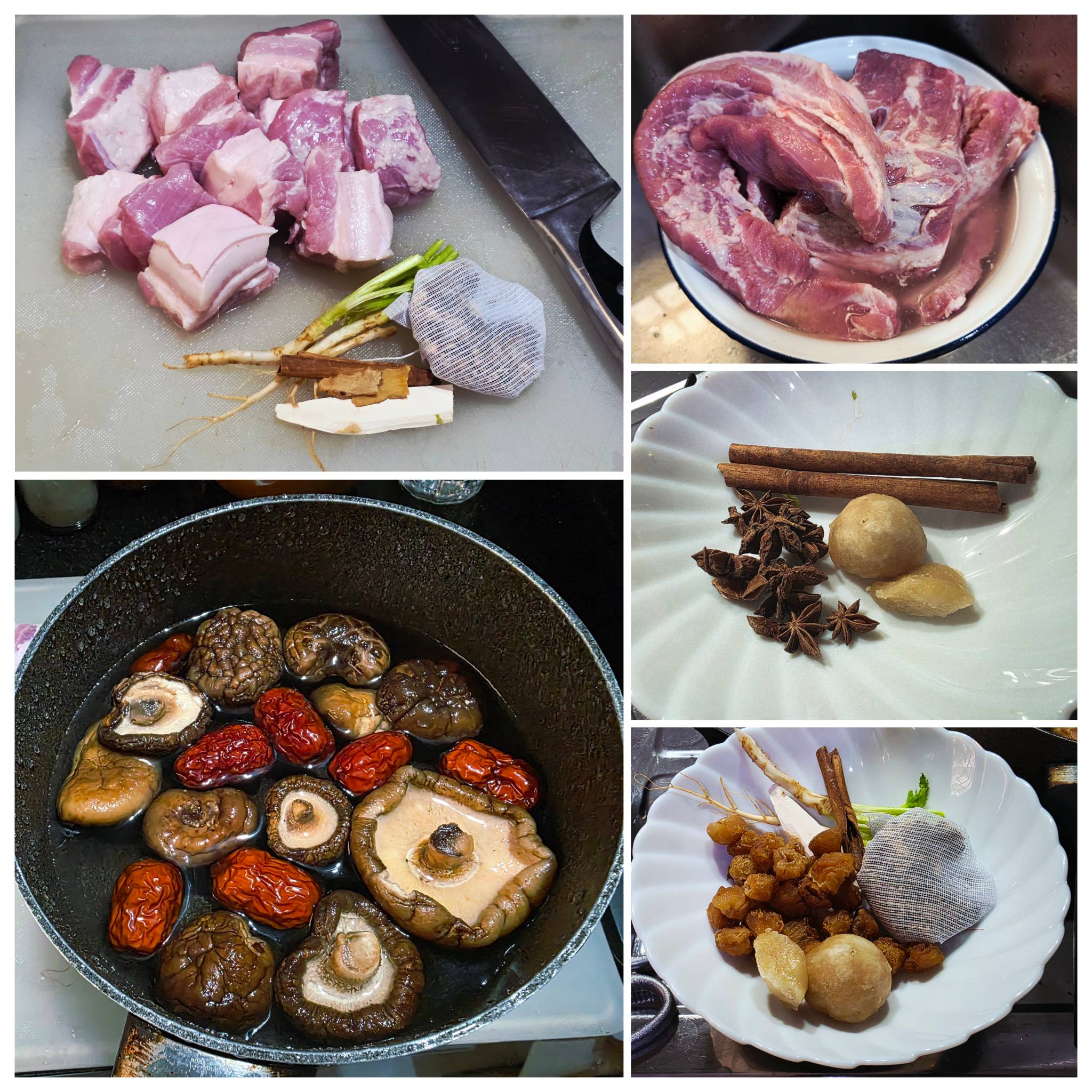2. เอาเครื่องยาจีนใส่ลงไป , เพิ่มโป้ยกั๊กกับอบเชย ลงไป ตามด้วย , สามเกลอ กับพริกไทยดำ , ลำไยอบแห้ง , เห็ดหอมที่เตรียมไว้
