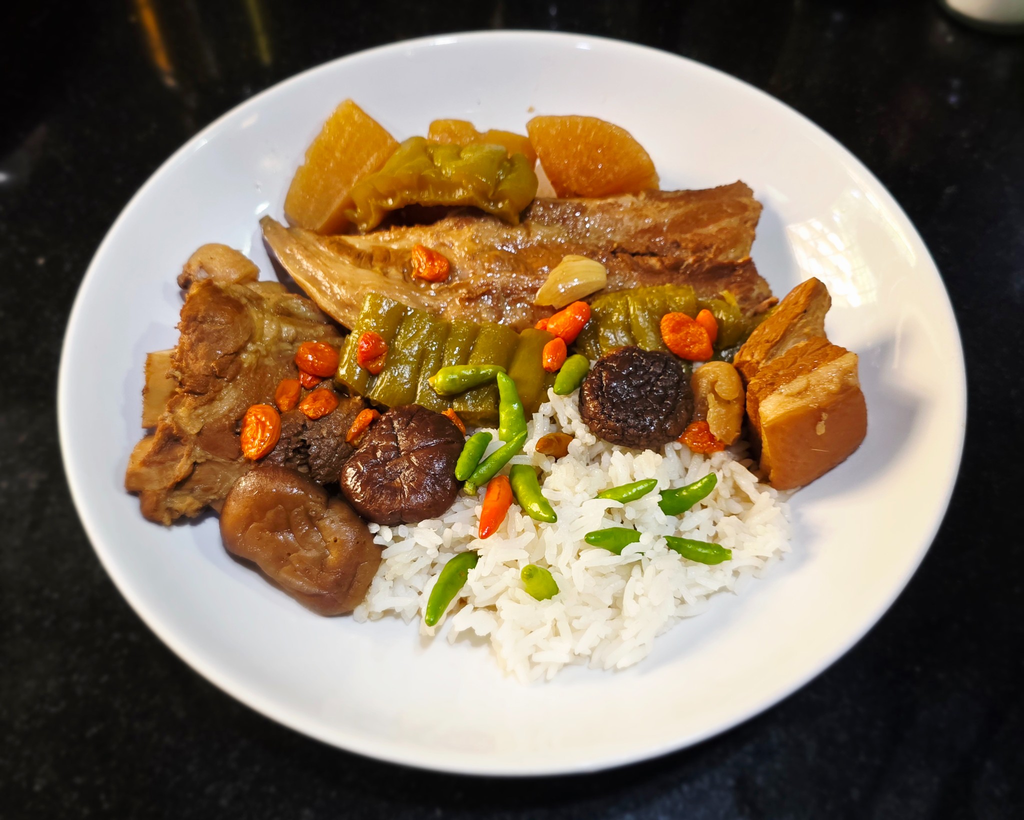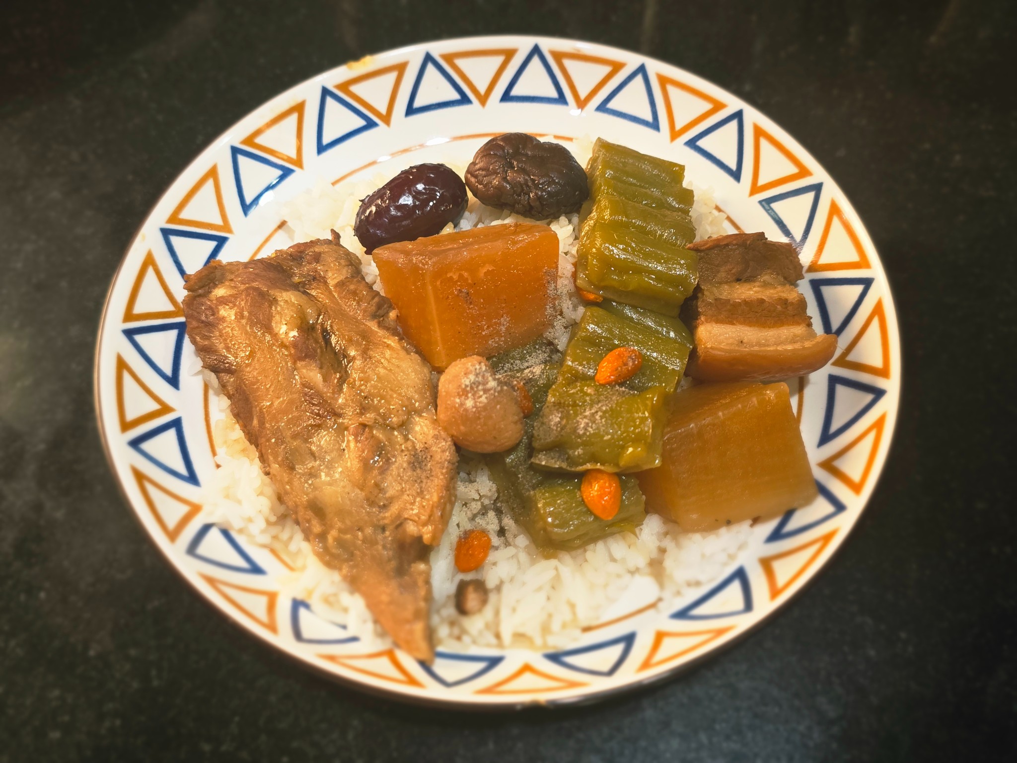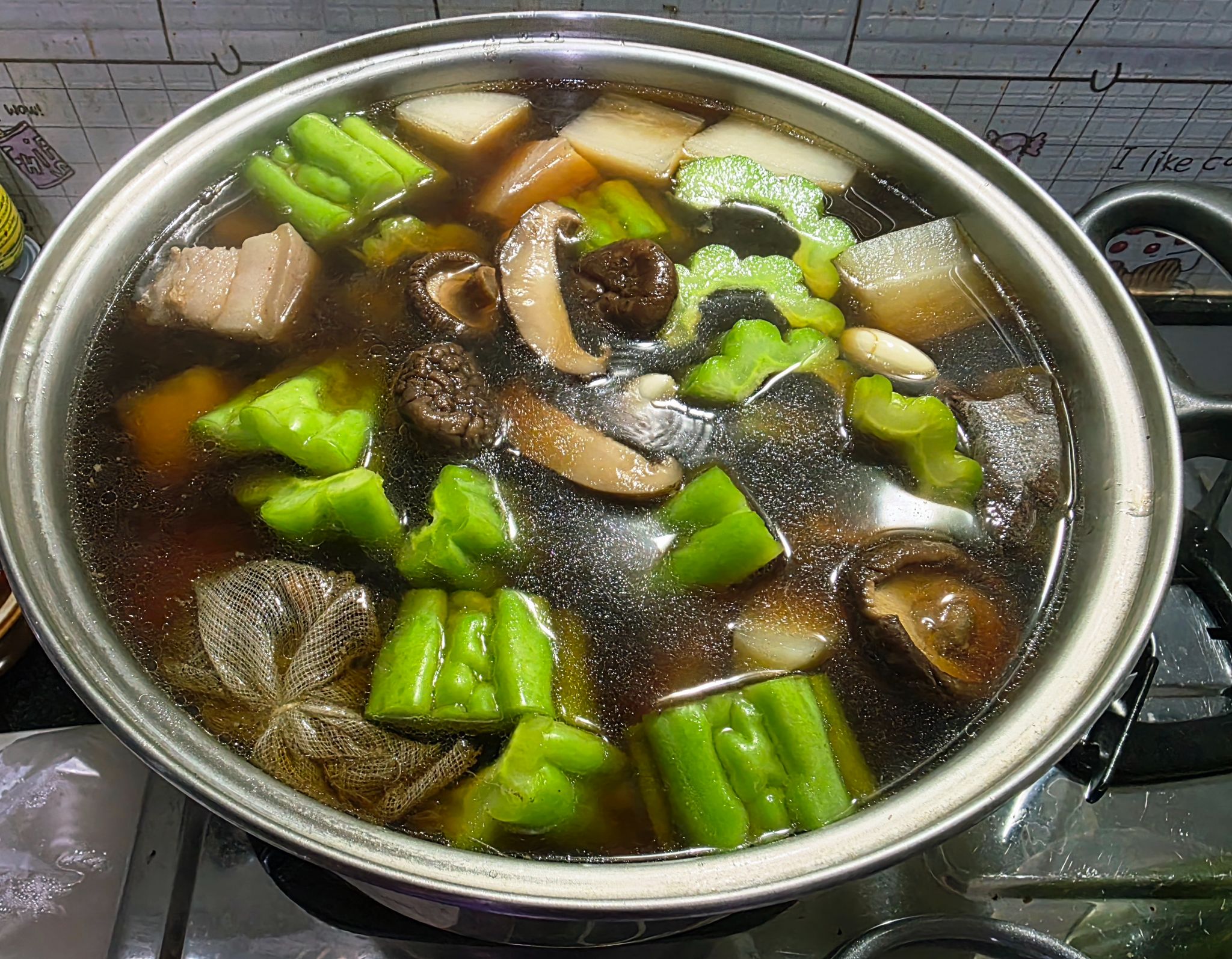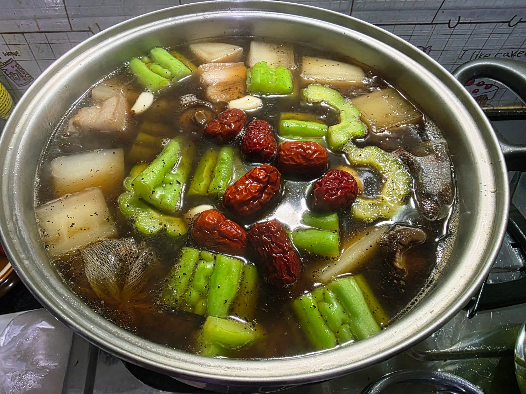 ไปตลาดเจอซี่โครงหมูสวยๆ หมูสามชั้น แบบไขมันน้อยๆ เลยอยากกิน เมนูซี่โครงหมูกับหมูสามชั้น ตุ๋นเครื่อยาจีน ใส่เก๋ากี้ ผมชอบเอาลำไยแห้ง ใส่ลงไปด้วยแทนพวกน้ำตาล หอมรสชาติดีเลยครับ เลยหาผักหัว พวก หัวไชเท้า กับมะระ มาหั่นเป็นชิ้นใส่ลงไปด้วย