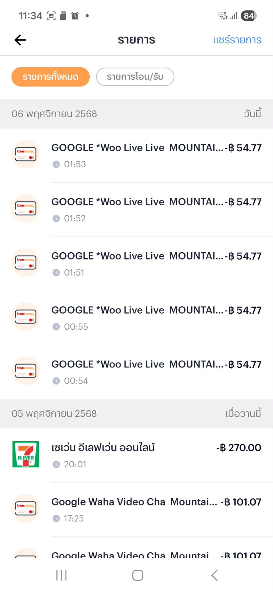 เริ่มตั้งแต่วันที่ 29 ตุลาคม เราไปเซเว่นปกติ หลังจากนั้นเริ่มมีการหักบัญชีจาก google ชื่อแอปแปลกๆ ตอนนั้นเราไม่ได้เอ๊ะใจ เพราะเตรียมเงินครั้งละน้อย แต่หลังจากนั้นเราสั่งซื้อของเยอะจาก Lotus online ซึ่งสามารถจ่ายผ่าน True money wallet ได้ เราเลยเตรียมไปเยอะ แต่ยังไม่จ่ายตอนนั้นเลย เพราะคิดว่าจะมาสั่งอีกตอนหลัง พอผ่านมาวันที่ 6 พ.ย. เริ่มเอ๊ะใจ เพราะเงินที่เราเติมไว้เริ่มหรอยหรอ เราเลยเชคบัญชี โป๊ะแตก เจอดูดเงินไปเพียบ ตั้งแต่ 29 ต.ต.