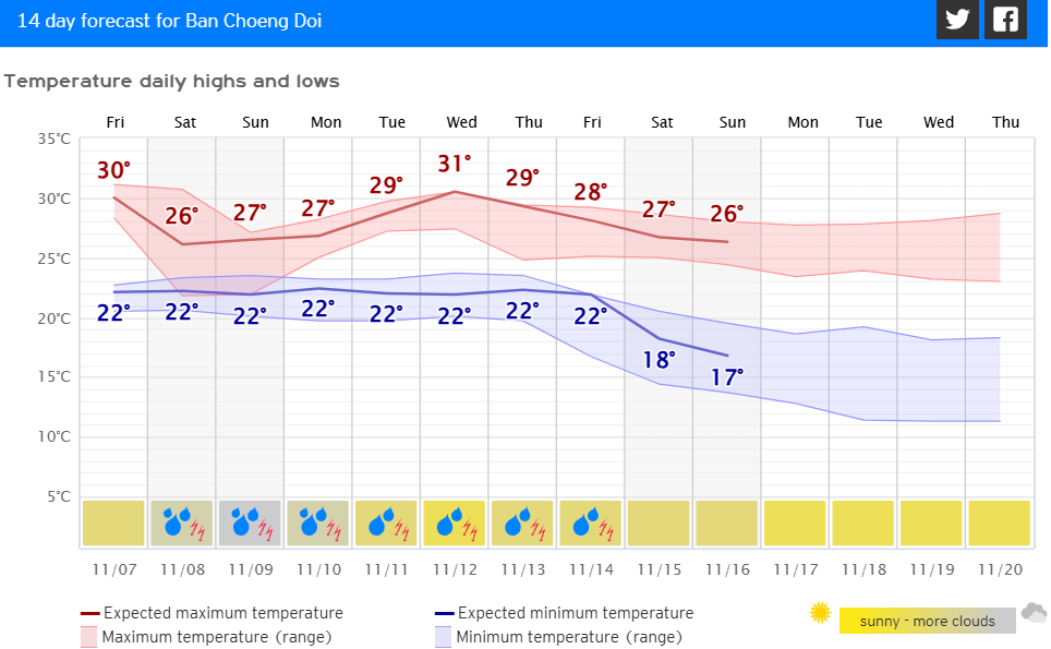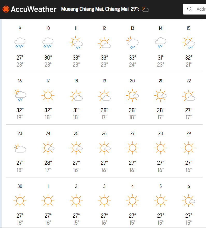ภาพที่ 4 จาก ACCUWeather ก็พบว่า ผลการพยากรณ์ให้เชียงใหม่เย็นลงเรื่อย ๆ ตั้งแต่วันที่ 15 พฤศจิกายนเป็นต้นไป