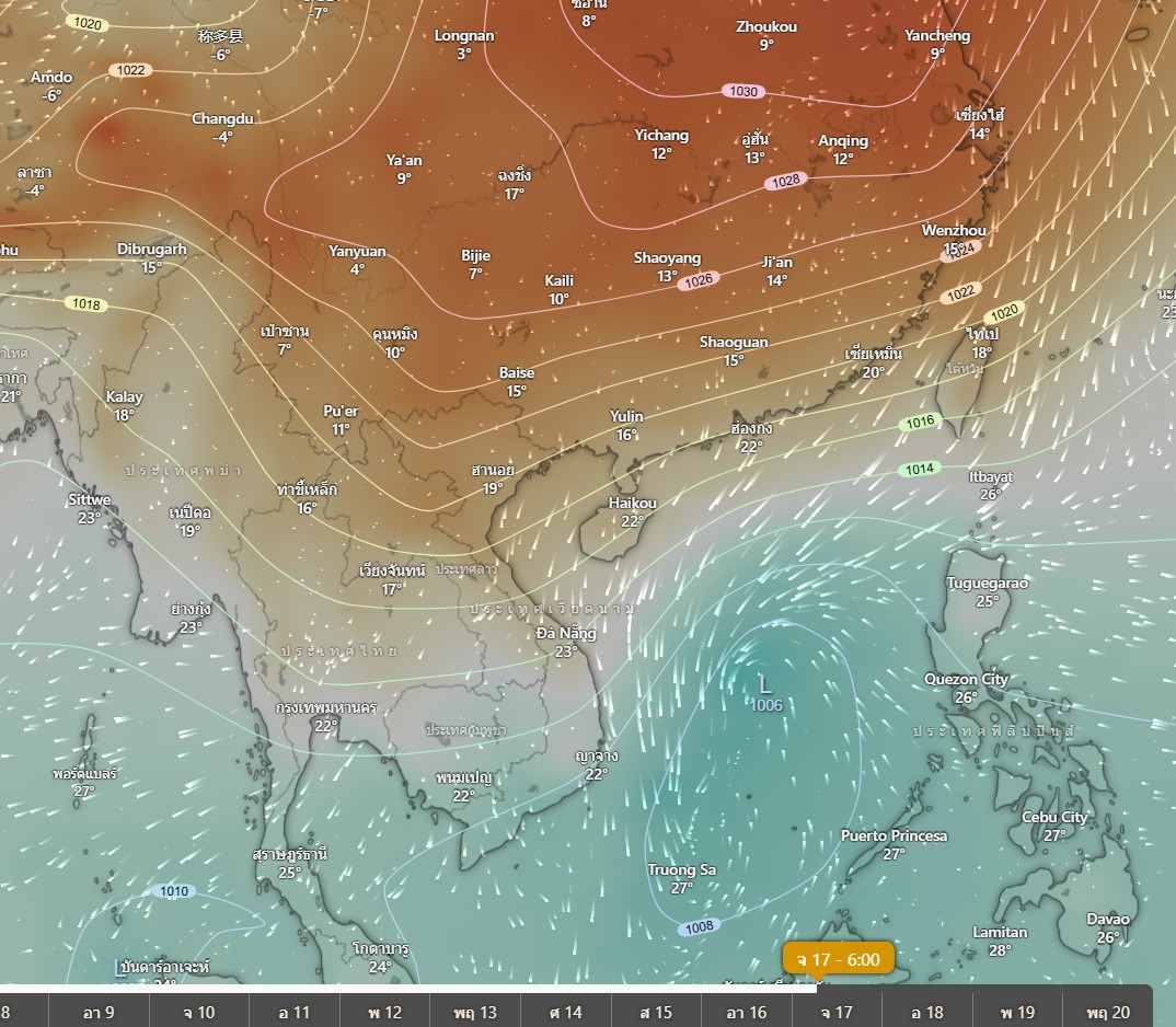 หลังพายุคัลแมกีผ่านไปแล้ว มีสัญญาณของมวลอากาศเย็นกำลังแรงหลังวันที่ 15 พฤศจิกายน??