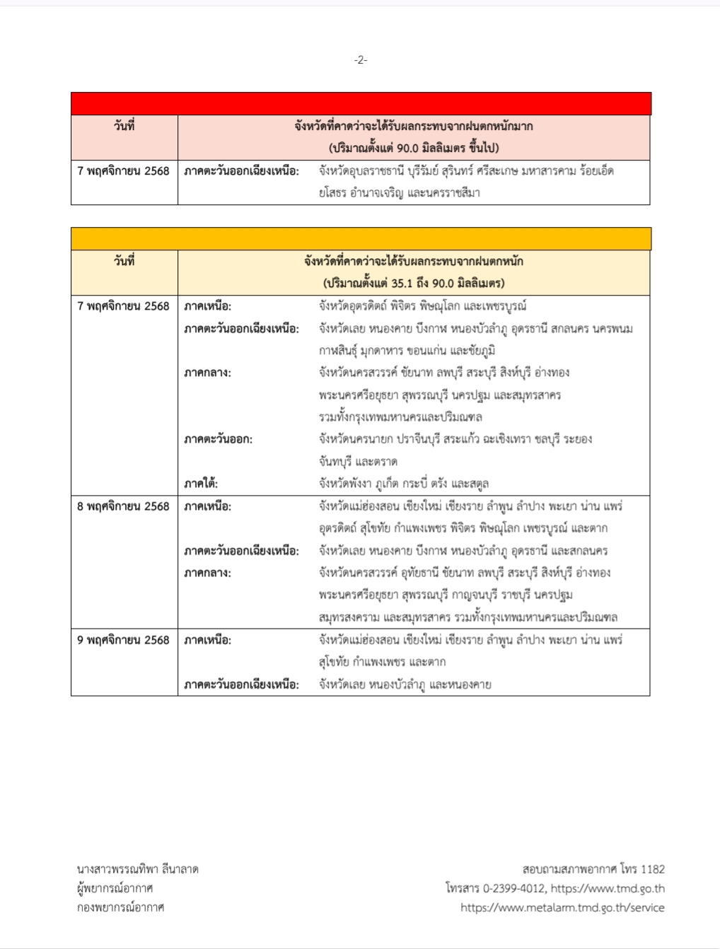 กรมอุตุนิยมวิทยาจะออกประกาศฉบับต่อไปในวันที่ 6 พฤศจิกายน พ.ศ. 2568 เวลา 18.00 น.