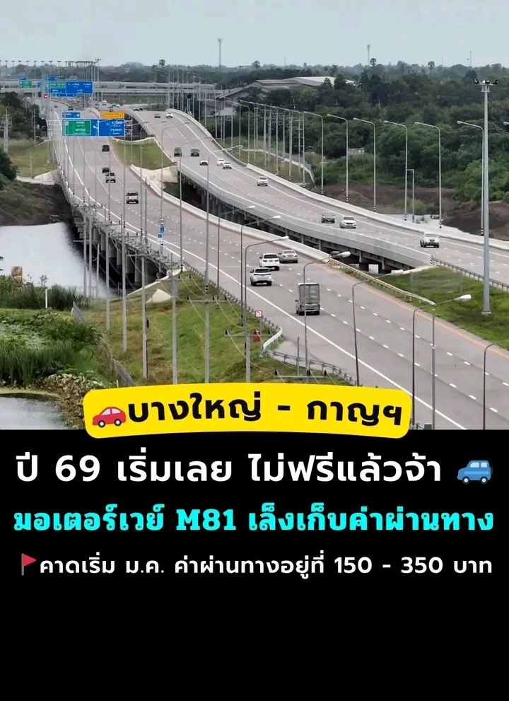 ทางด่วน m81 เปิดให้วิ่งฟรีทุกวันตลอด 24 ชั่วโมง