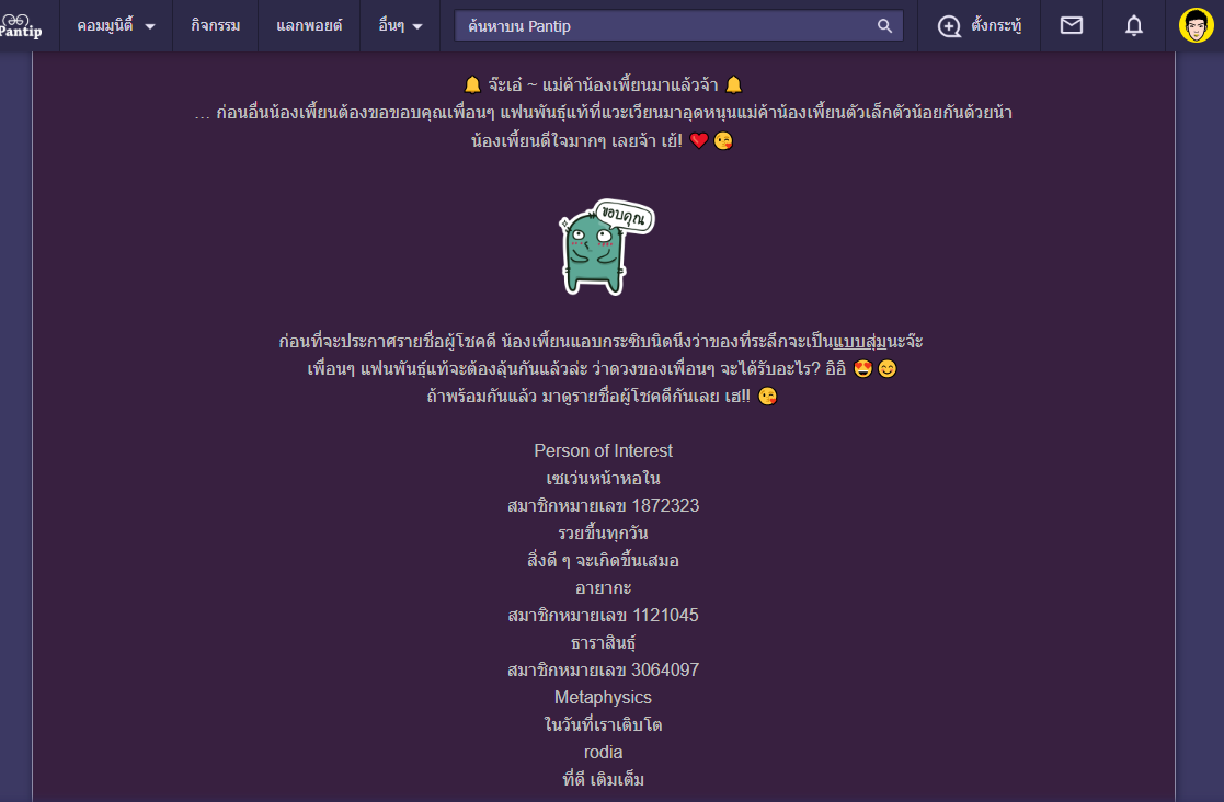 ขอบคุณสำหรับทีมงานพันทิพ ที่แจกรางวัลนี้ครับ
